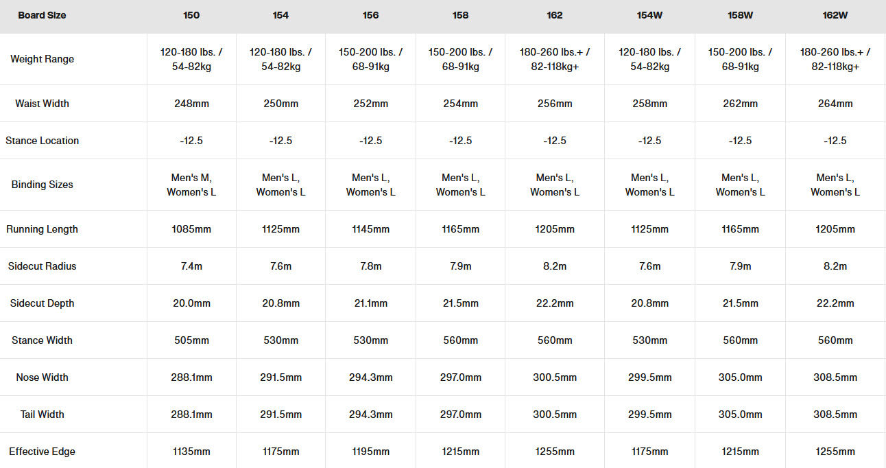 All Mountain Snowboard. Η έκδοση Flying V του Custom συνδυάζει τα καλύτερα στοιχεία της κάμπερ και της rocker, προσφέροντας μια εξαιρετικά παιχνιδιάρικη βόλτα σε όλο το βουνό.. Συχνά εχει μιμιθεί, ποτέ δεν εκανε πίσω, και υποστηρίζεται από χιλιάδες λατρείας ως μια απάντηση του snowboarding για όλα τα εδάφη.