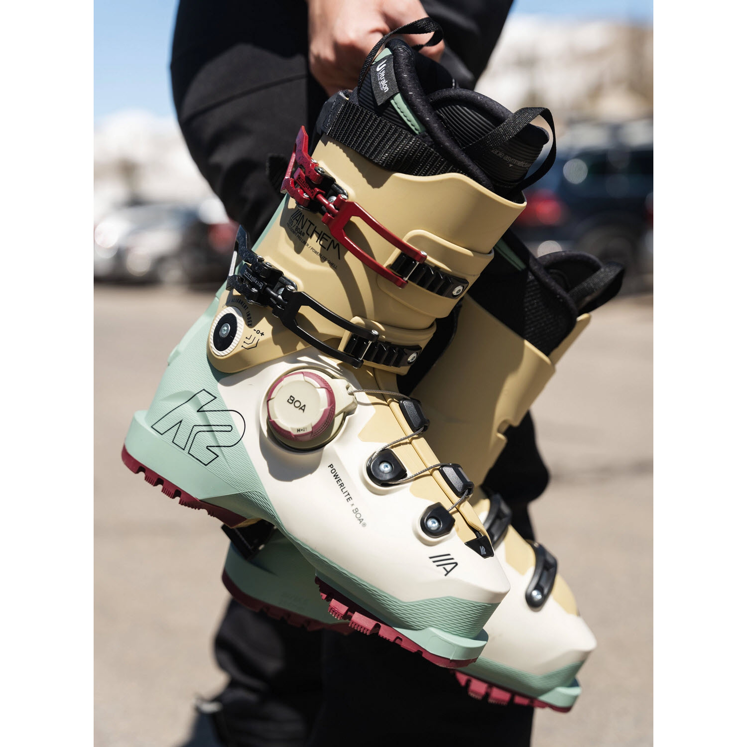 Ετοιμαστείτε για το επόμενο επίπεδο άνεσης και απόδοσης με τις νέες μπότες σκι K2 Anthem 105 BOA, ένα νέο μοντέλο που βασίζεται στο δοκιμασμένο Anthem 105 αλλά με επανασχεδιασμένο κάτω κέλυφος που ενσωματώνει το κλείσιμο με καντράν BOA Fit System. Όχι δεν υπήρχε τίποτα λάθος με το προηγούμενο Anthem 105, αλλά οι δοκιμαστές έχουν ενθουσιαστεί για το πόσο πιο ομαλά το BOA τυλίγει το μπροστινό μέρος του ποδιού και πόσο ελαφρά μπορείτε να ρυθμίσετε την τάση του καλωδίου και να αισθάνεστε ότι έχετε τον απόλυτο έλεγχο των σκι σας . Εάν προσθέσετε ένα νέο πράγμα στο κιτ του σκι σας αυτή την ερχόμενη σεζόν, το Anthem 105 BOA μπορεί να είναι το πράγμα. Η Κ2 Anthem 105 BOA είναι η μπότα που δεν συμβιβάζεται με χαρακτηριστικά ή τεχνολογίες, προσανατολισμένη στην απόδοση με ένα κέλυφος θερμοδιαμορφώσιμο που αφήνει το όγκο και το βάρος πίσω. Προσπαθήσαμε να κατασκευάσουμε την πιο ευέλικτη και κατάλληλη για γυναικεία μπότα απόδοσης στην αγορά και ξεπεράσαμε τους εαυτούς μας. H νέα Anthem 105 BOA εξοπλισμένη με το ολοκαίνουργιο σύστημα BOA® Fit System και το MultiFit Last, αυτές οι μπότες έχουν 100 σημεία μικρορύθμισης και ένα τελευταίο έχουν σχεδιαστεί για να φιλοξενούν διάφορα σχήματα ποδιών με αποτέλεσμα την κορυφαία απόδοση στην πίστα και μια μικρο-ρυθμιζόμενη εφαρμογή ακριβείας. Συνδυάζοντας τέσσερα διαφορετικά πλαστικά TPU με ένα βέλτιστο πάχος κελύφους για να κατασκευάσει το ολοκαίνουριο κέλυφος Powerlight, κατασκευάζοντας μια μπότα σχεδιασμένη για ελίτ επιδόσεις με το μικρότερο δυνατό βάρος της αγοράς . Το κέλυφος είναι πλήρως θερμοπλαστικό TPU, έτσι ώστε κατά τη διάρκεια θερμικής επεξεργασίας η μπότα να εφαρμόζει τέλεια στα συγκεκριμένα χαρακτηριστικά των ποδιών σας. Η λειτουργία εισόδου Fast fit βοηθά στην είσοδο και έξοδο του ποδιού στην μπότα με ευκολία. Το αποτέλεσμα είναι ένα ότι η νέα Anthem είναι η κορυφαία μπότα για σκι στην αγορά. Tο σύστημα SpYne PowerFuse διασφαλίζει την αποτελεσματική μεταφορά ενέργειας ,