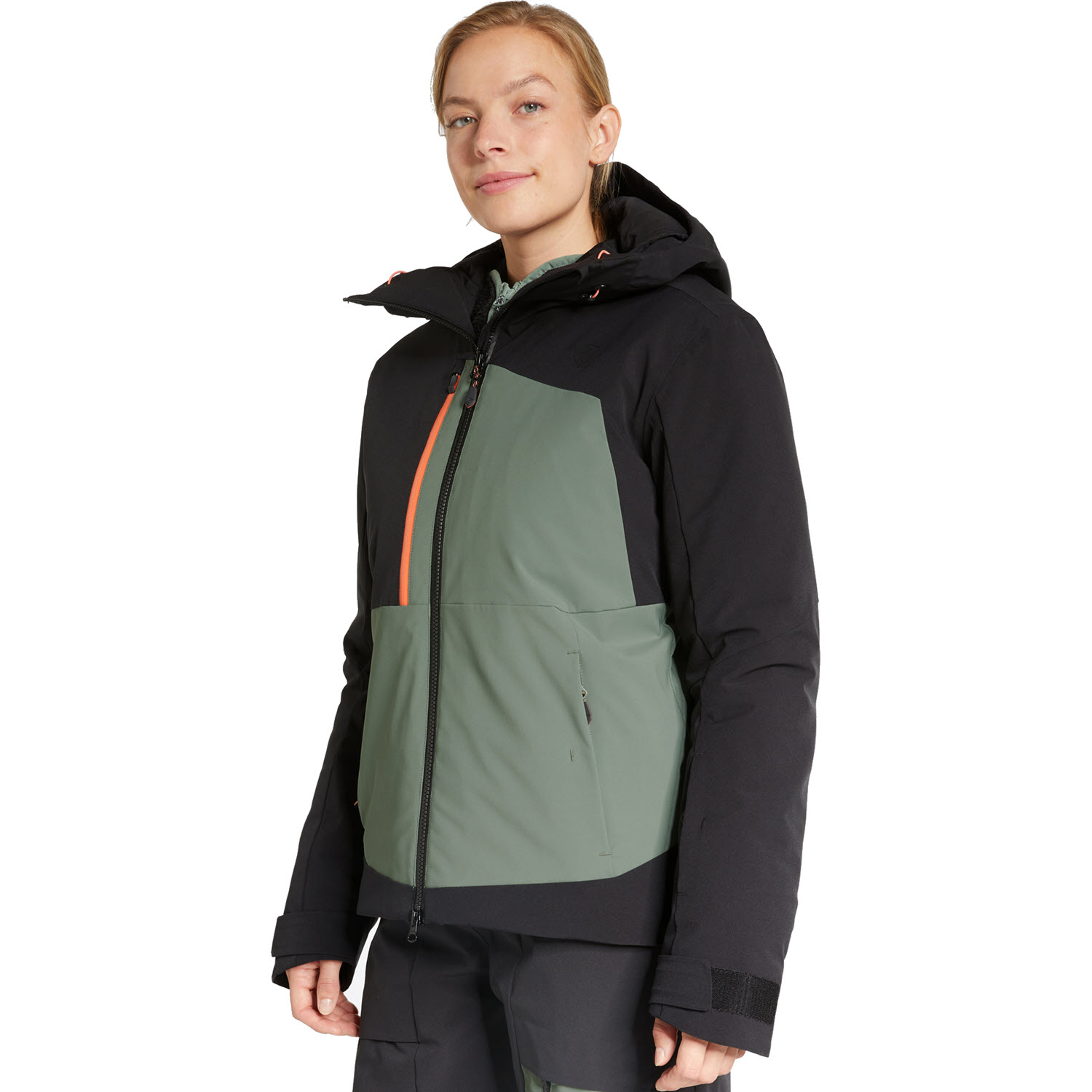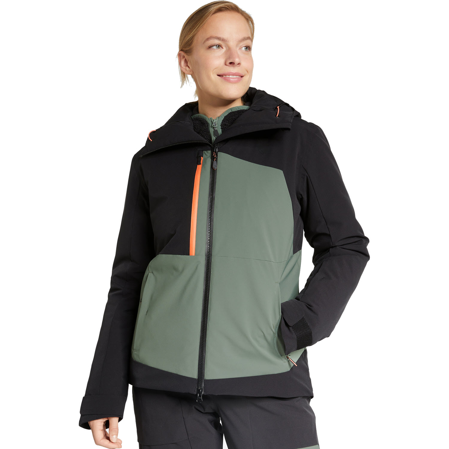 Το εξαιρετικά λειτουργικό, με επένδυση ZIENER γυναικείο μπουφάν Freeride Tayara Lady είναι ιδανικό για freeride. Η εξαιρετική διαπνέουσα, αδιάβροχη και αντιανεμική μεμβράνη ZIENER AQUASHIELD® (υδροστατική κεφαλή 10.000mm/αναπνευσιμότητα 10.000g/m²/24h) σας κρατά ζεστούς και στεγνούς. Επιπλέον, ένα υψηλής ποιότητας μονωτικό μείγμα σας κρατά ιδιαίτερα ζεστό και άνετο ακόμα και σε πολύ κρύο: το μάλλινο pad lavalan® (60g/m²) εξασφαλίζει φυσική θερμοκρασία σώματος χωρίς υπερθέρμανση. Ο ψηλός γιακάς προσφέρει επιπλέον ζεστασιά. Το μπουφάν δεν περιέχει PFC χάρη στη φιλική προς το περιβάλλον αδιαβροχοποίηση. Οι τεχνικές λεπτομέρειες, όπως μια ρυθμιζόμενη λειτουργική κουκούλα, καθώς και οι ελαστικές εσωτερικές μανσέτες συμβάλλουν στην υψηλή λειτουργική άνεση αυτού του μπουφάν. Οι αεραγωγοί κάτω απο τις μασχάλες παρέχουν τον απαραίτητο αερισμό. Τα αδιάβροχα φερμουάρ και το προστατευτικό χιονιού είναι επίσης στάνταρ χαρακτηριστικά. Η τσέπη στο στήθος με φερμουάρ και πολλές άλλες τσέπες για γυαλιά σκι και γυαλιά ηλίου, κινητό τηλέφωνο και πάσο σκι κάνουν το σακάκι απαραίτητο. Το προϊόν περιέχει ανακυκλωμένο υλικό – για μια προσέγγιση εξοικονόμησης πόρων για την προστασία του περιβάλλοντος.