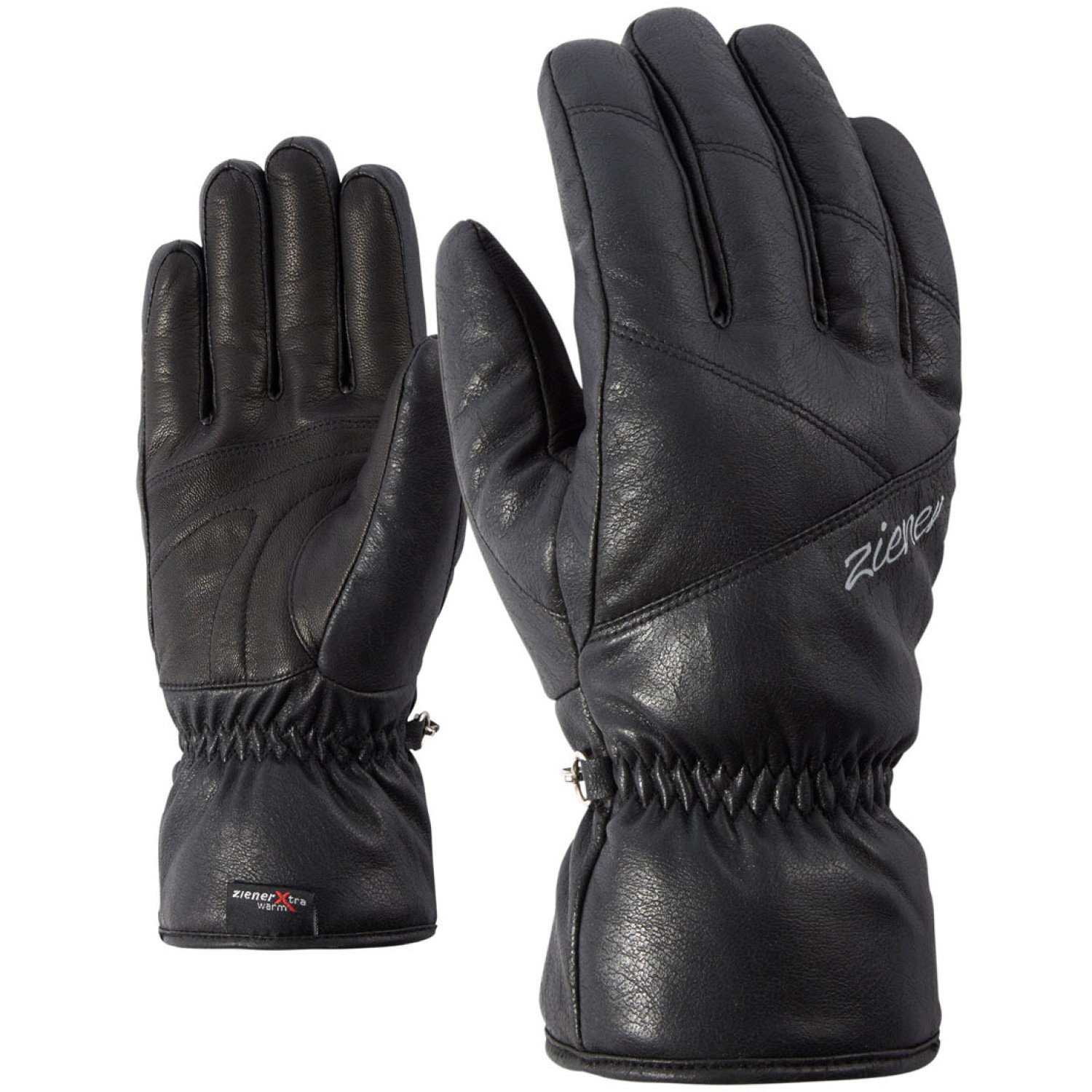 Τα γεμισμένα, μοντέρνα γυναικεία γάντια ZIENER KINGALA PR Lady είναι εξοπλισμένα με την εξαιρετικά ζεστή επένδυση PrimaLoft® Gold για να κρατούν τα χέρια ζεστά ακόμη και σε ιδιαίτερα κρύες μέρες. Η ζεστή βελούδινη επένδυση είναι πολύ άνετη και συνδυάζεται με τις μαλακές και ανθεκτικές παλάμες φυσικού δέρματος για να εξασφαλιστεί η μέγιστη άνεση και αίσθηση για τα μπατόν. Το υλικό κατασκεύης ξεχωρίζει και δίνει στα γάντια ένα λαμπερό άγγιγμα στις πλαγιές! Περιέχει κλωστοϋφαντουργικά μέρη μη ζωικής προέλευσης. Οι ενισχυμένες παλάμες καθιστούν τα γάντια πολύ γερά και ανθεκτικά στην φθορά.
