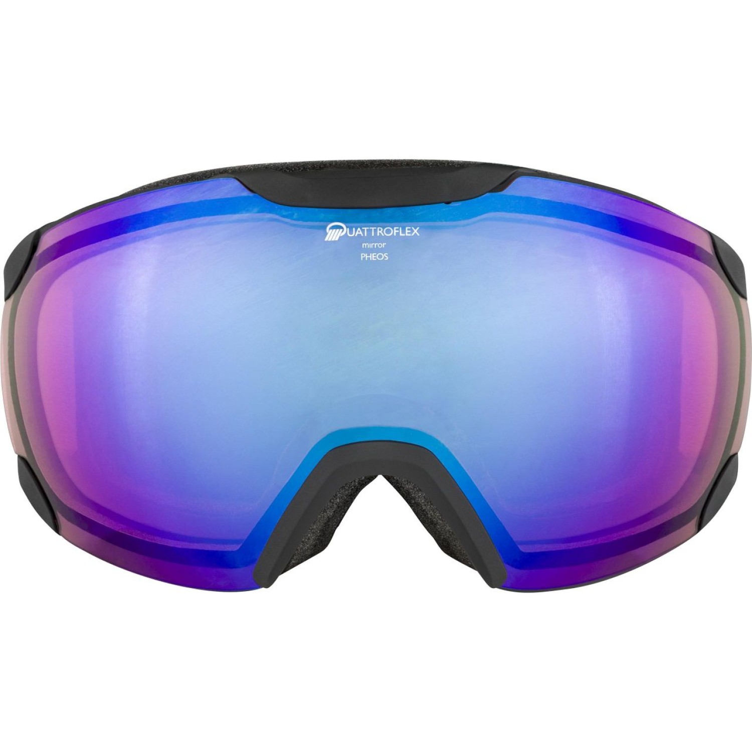 Ισως η κορυφαία σε ποιότητα και τεχνολογία μεγάλη μάσκα για snowboard η ski , πολύ άνετη με κομψή και λεπτή σχεδίαση πλαισίου και περιστρεφόμενη βάση του ιμάντα η Pheos QUATTROFLEX MultiMirror απευθύνετε σε αναβάτες επιδόσεων .Ιδανική για όλες τις συνθήκες φωτός , από ομίχλη και συνεφιά έως πολύ έντονο ηλιακό φώς ,στις ηλιόλουστες μέρες. Διαθέτει ειδική επίστρωση antifog έτσι ώστε να μήν θαμπώνει, με διπλούς φακούς ,τεχνολογία MULTIMIRROR και τεχνολογία QUATTROFLEX και εξτρά ειδική επίστρωση καθρέπτη ,είδικό σύστημα αεραγωγών για καλή κυκλοφορία του αέρα.Ένα φύλλο πόλωσης με την υψηλότερη δυνατή οπτική ποιότητα ενσωματώνεται στο φακό και είναι υπεύθυνη για το QUATROFLEX αποτέλεσμα. Φιλτράρει το ενοχλητικό διάχυτο φως και το έντονο φως, επιτυγχάνοντας έτσι ακραία ενίσχυσης της αντίθεσης. Το περίγραμμα τών εικόνων στην πίστα του σκι είναι πολύ πιο αναγνωρίσιμο και έτσι οι σκληρές παγωμένες περιοχές με πολύ πάγο γίνονται ορατές σε όλους. Είναι μια μάσκα με πολύ καλό και πλατύ οπτικό πεδίο που θα καλύψει όλες σας τις ανάγκες στην ομίχλη καθώς και τις υπόλοιπες ημέρες στο βουνό.όπου εγγυάται 100% UVA/UVB/UVC προστασία και υψηλή αποροφήση και αντανάκλαση της επικίνδυνης ακτινοβολίας και είδικό σύστημα αεραγωγών Air Frame venting για καλή κυκλοφορία του αέρα. Είναι μια μάσκα με πολύ καλό και μεγάλο οπτικό πεδίο 180+ view ,που θα καλύψει όλες σας τις ανάγκες στο βουνό Ολες οι μάσκες ALPINA είναι πιστοποιημένες με τα τελευταία ευρωπαικά standard CE:EN174:2001 και έχουν περάσει τα δυσκολότερα ευρωπαικά τεστ σχετικά με την ποιότητα των φακών ,την αντοχή και την εφαρμογή.