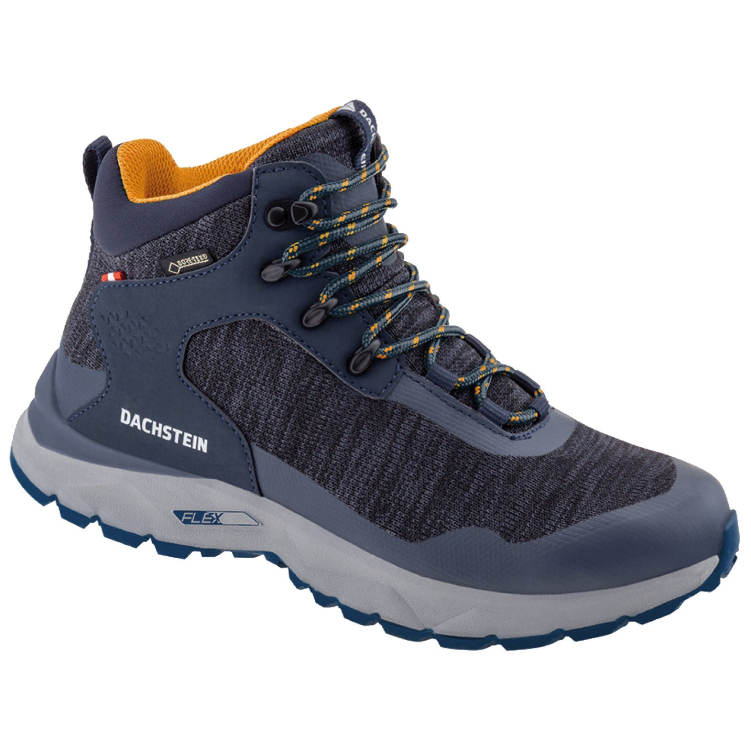 Ελαφρύ, αδιάβροχο παπούτσι πεζοπορίας με το επάνω μέρος από ύφασμα χωρίς ραφή για τέλεια εφαρμογή. Το νέο Dachstein Gaisberg Gore-Tex®, ένα νέο παπούτσι πεζοπορικό με εξαιρετικά λειτουργικό τύπου"πλεκτό" άνω μέρος, διαθέτει μια νέα πολυλειτουργική σόλα και μοντέρνο στυλ.. Το εύκαμπτο ύφασμα του άνω μέρους,προσαρμόζεται γύρω από το πόδι, σαν κάλτσα όταν σκαρφαλώνει. Η μεμβράνη Gore-Tex® επιτρέπει σε αυτό το πολυλειτουργικό παπούτσι να είναι υδατοστεγές και να αναπνέει για ελαφριά αθημερινή πεζοπορία. Δεδομένου ότι είναι ιδιαίτερα οι περιοχές ακριβώς πάνω από τη σόλα που υφίστανται ακραίες φθορές όταν χτυπάνε ένα βράχο ή κολλούν, αυτές είναι οι ζώνες που τώρα προστατεύονται από ψεκασμένο πλαστικό TPU. Το πέλμα Dachstein Flex είναι εμπνευσμένο από το φυσικό στυλ περπατήματος έτσι ώστε να ενισχύσει την κίνηση του «φυσικού περπατήματος». Η σόλα είναι από καουτσούκ για τέλεια λαβή και φυσική κίνηση ενώ παραμένει αρκετά ελαστική ώστε να ενθαρρύνει τη φυσική κίνηση του ποδιού. Η Dachstein διαθέτει Gore-Tex® κάτω από το άνω μέρος του Aero Knit , μεμβράνη που είναι ανθεκτική στο νερό και δεν φθείρεται. Ο εσωτερικός πάτος ειναι ORTHOLITE, ένα αφρώδες υλικό με αντι-μικροβιακή προστασία και μείωση της δυσάρεστης οσμής, καλύτερη στήριξη του ποδιού, απομάκρυνση της υγρασίας και καλύτερος αερισμός.