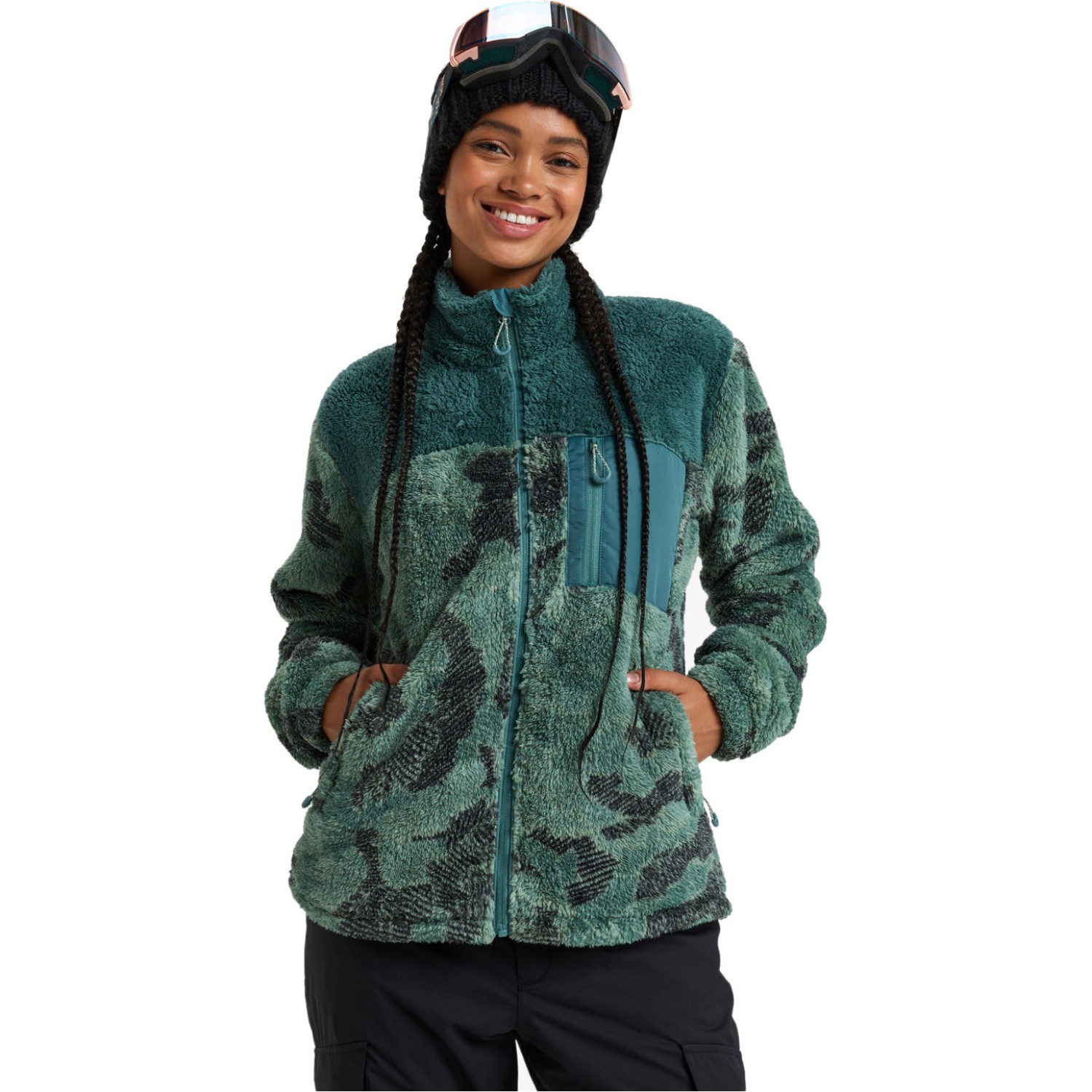 Alabama sherpa φλίς για γυναίκες Διπλασιάστε το στυλ του χιονιού σας με αυτή τη ζακέτα Sherpa με γήινα χρώματα για γυναίκες. Το βελούδινο ύφασμα sherpa από πολυεστέρα διαθέτει τεχνολογία ROXY WarmFlight για ζεστασιά χωρίς ερεθισμούς για να σας κρατά άνετες τις μέρες γεμάτες δράση. Ολοκληρώνεται με πλήρες φερμουάρ εμπρός, τσέπες για ζεστά χέρια και ρυθμιζόμενο στρίφωμα.