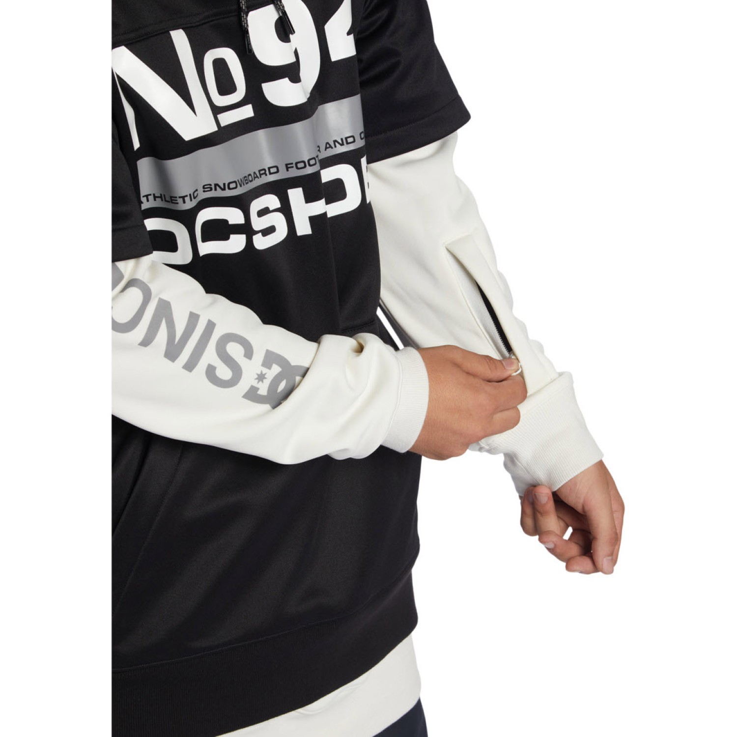 To νεό Dryden για άνδρες από την DC συλλογή χιονιού. Τα χαρακτηριστικά του Dryden περιλαμβάνουν: διπλό στρώμα hoodie ,Αφαιρούμενο T-shirt αμάνικο, επεξεργασία από  DWR, rib δεμένη ποδόγυρο και μανσέτες με τρύπα για τον αντίχειρα, τσέπη καγκουρό, υποδοχή για καλώδιο ήχου και μια σύνθεση από 100% πολυεστέρα. Με όλα αυτά τα ωραία χαρακτηριστικά είναι ιδανικό για την επόμενη εξ'ορμησή σας στο χιόνι .