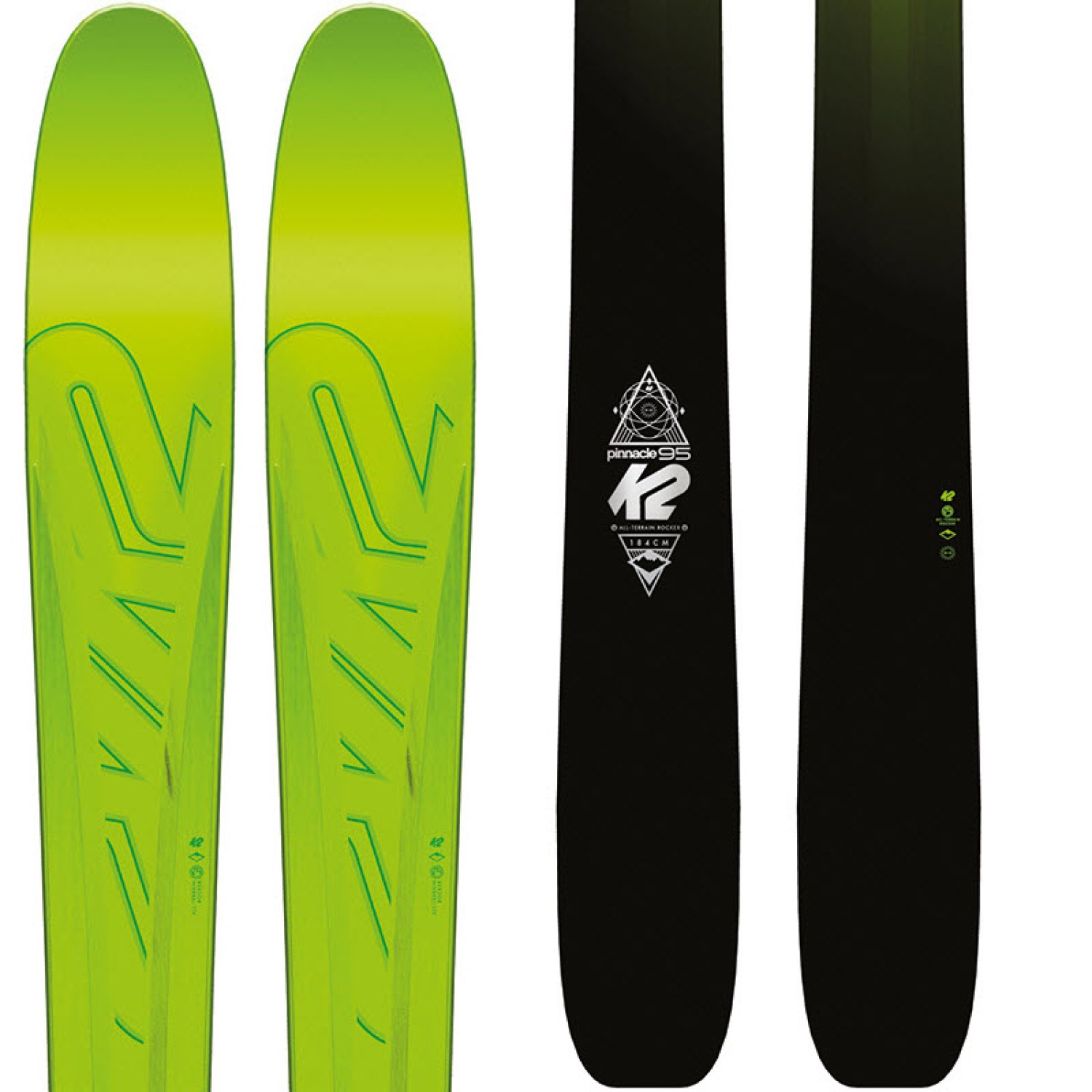 Προσφέρεταιι σε ένα γενικής χρήσης πλάτος στη μέση για να επιτεθεί στο χιονοδρομικό σε οποιαδήποτε κατάσταση του χιονιού βρεθεί μπροστά του, το νέο Κ2 Pinnacle 95 ενσωματώνει τη νέο K2 Konic τεχνολογία για υψηλές επιδόσεις, το νέο ελαφρύ πυρήνα Nanolite (διαστημικής τεχνολογίας). για πρόσθετη ευκολία και τον έλεγχο, ενώ τα φύλλα μεταλλου περιμετρικά στον πυρήνα του ξύλουεμπεριέχουν όλη τη δύναμη, τη δύναμη και τη σταθερότητα που απαιτείται για ένα κορυφαίο all-mountain καταστροφέα.Το All Terrain Rocker έχει σχεδιαστεί για όλα τα επίπεδα ικανότητας και προσθέτει ευελιξία και την ευκολία κατα την έναρξη της στροφής σε όλες τις συνθήκες χιονιού . Συνεχίζοντας την ιστορία της Κ2 για τη δημιουργία ποιοτικών σκι freeride, το Pinnacle 95 είναι το απόλυτο εργαλείο για απαιτητικούς Freerider.