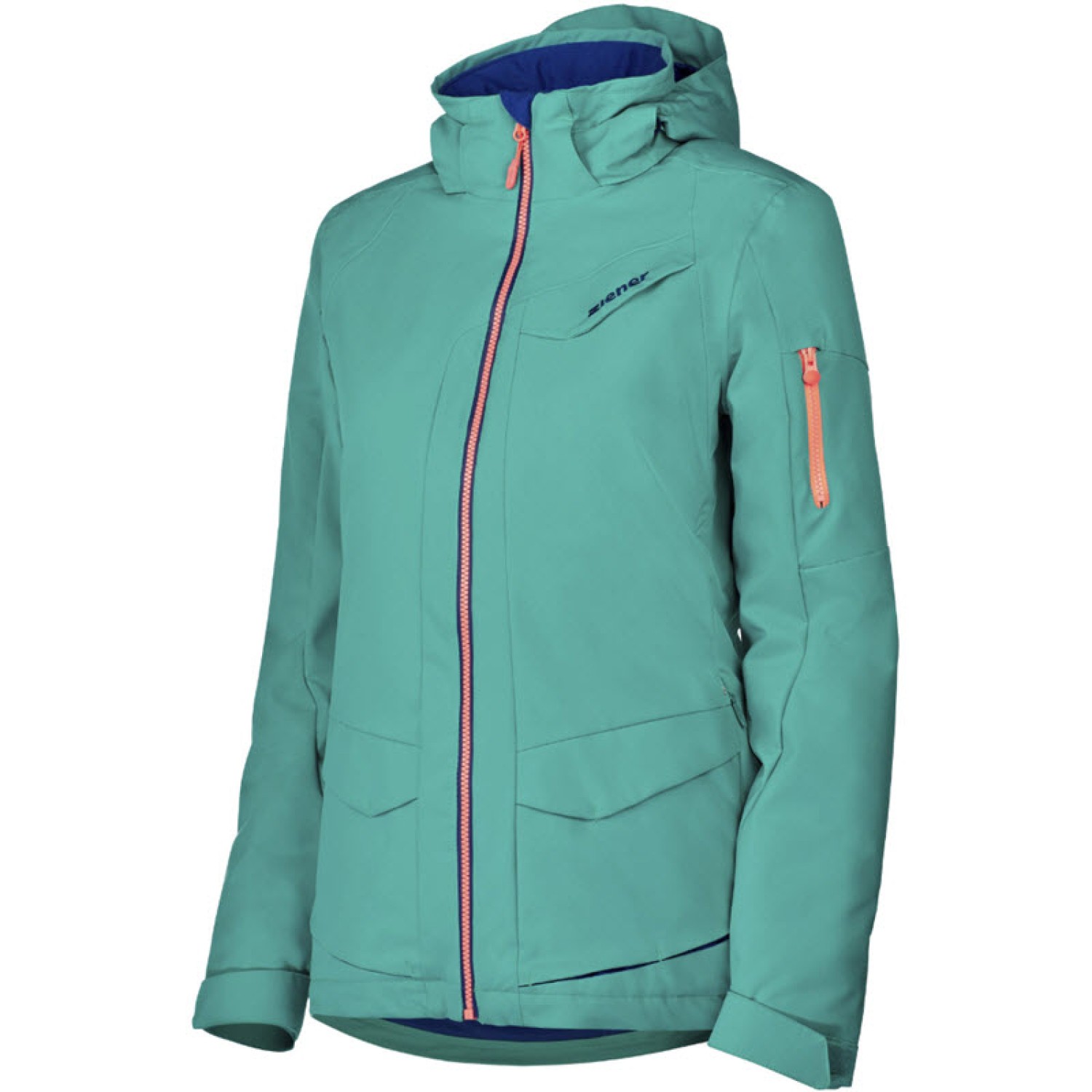 Tεχνικό σπορ άλλά καί καθημερινό μπουφάν σκι για να ικανοποιεί τις υψηλότερες τεχνικές απαιτήσεις, αλλά είναι επίσης εντυπωσιακό με μοντέρνα χαρακτηριστικά. Με aquashield μεμβράνη η οποία είναι πολύ αδάβροχη (10.000mm) και διαπνοή 10.000gr, θερμοκολύμμένες ραφές, στο εξωτερικό ύφασμα , ενώ εσωτερικά είναι πολύ μαλακό και ζεστό με λεπτή ισοθερμική επένδυση έτσι ώστε να μένετε στεγνές και ζεστές όλη μέρα και 100gm βάτες, αντιστέκεται σε κάθε καιρό και σας κρατά άνετα και ζεστά. Διαθέτει 4 strech ρυθμιζόμενα τεντώματα για να προσαρμόζεται στο σώμα σας χωρίς να εμποδίζετε η κίνησή σας και φερμουάρ κάτω από τις μασχάλες για περισσότερο αερισμό. Υπάρχουν τσέπες για τα χέρια και αρκετές θήκες για κλειδιά, μικροαντικείμενα και κινητό τηλέφωνο. Η έγχρωμη αντίθεση στο φερμουάρ ορίζει επίσης μοντέρνους τόνους.