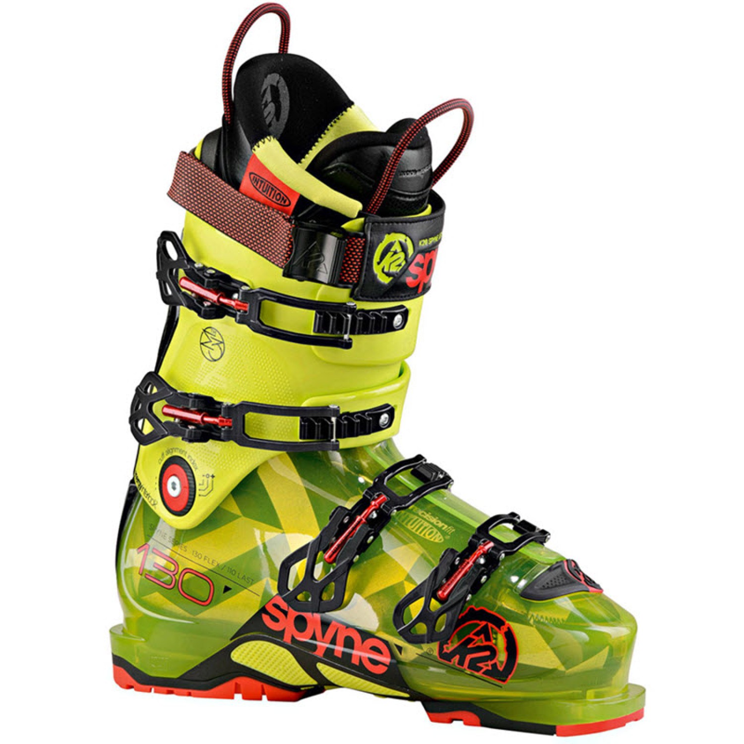 Ανανεωμένες και ίσως οι κορυφαίες μπότες σκι που έχουν κατασκευαστεί ποτέ για πολύ καλούς και εξπέρτ σκιέρ. Με 130 Flex , η K2 SpYne 130 μπότες του σκι είναι κατασκευασμένες για υψηλής απόδοσης , επιθετικού προφίλ, all-mountain σκι στο μυαλό . Είναι οι κορυφαίες, Αllmountain και πίστας, μπότες του σκι στη γραμμή της Κ2 και έρχονται σε 100 mm χιλιοστά φάρδος για μια ακριβή εφαρμογή . Το επαναστατικό Energy Interlock καθώς και το SpYne PowerFuse διασφαλίζουν την αποτελεσματική μεταφορά ενέργειας , το οποίο βρίσκεται στο πίσω μέρος της μπότας σε σχήμα «Υ» από Carbon ,για να δημιουργήσει περισσότερη δύναμη , επομένως μεγιστοποίηση / επαναφορά του flex και πλευρική ακαμψία . Λόγω της SpYne κατασκευής βελτιστοποιείτε η μεταφορά δυνάμεων πρός το κέλυφος και εξάλειφονται οι υπερβολικοί κραδασμοί στο τραχύ terrain.