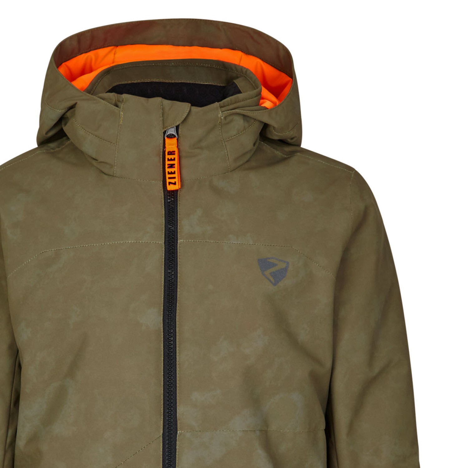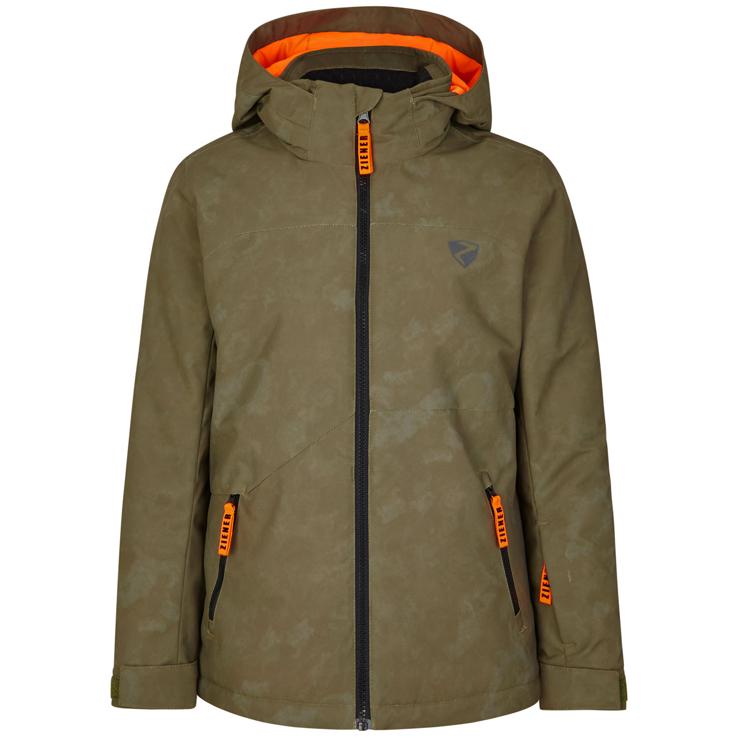 Ζεστό, μοντέρνο παιδικό μπουφάν για σκι και κρύο. Το λειτουργικό, μονωμένο μπουφάν σκι ZIENER ANDERL JUNIOR διατηρεί αξιόπιστα τη ζεστασιά στον κρύο καιρό χάρη στην υψηλής ποιότητας επένδυση 120 g/m². Είναι επίσης εξοπλισμένα με την αναπνεύσιμη, αδιάβροχη και αντιανεμική μεμβράνη ZIENER AQUASHIELD® (υδροστατική κεφαλή 10.000mm/αναπνευσιμότητα 10.000g/m²/24h), η οποία κρατά τα παιδιά ζεστά και στεγνά. Η ζεστή επένδυση στο πίσω μέρος παρέχει πρόσθετη μόνωση και οι απαλές, ελαστικές μανσέτες εξασφαλίζουν τέλεια εφαρμογή. Οι πιο σημαντικές ραφές είναι θερμοκολλημένες. Το σακάκι κερδίζει πόντους με περισσότερες λεπτομέρειες, όπως τσέπη για πάσο σκι, τσέπη για γυαλιά ηλίου και γυαλιά σκι καθώς και προστατευτικό για το χιόνι. Έρχεται επίσης με ανακλαστικά στοιχεία σχεδίασης. Το μπουφάν του σκι είναι χωρίς PFC χάρη στη φιλική προς το περιβάλλον αδιαβροχοποίηση. Η κουκούλα συμμορφώνεται με το πρότυπο DIN EN 14682 για την ασφάλεια των παιδικών ενδυμάτων.