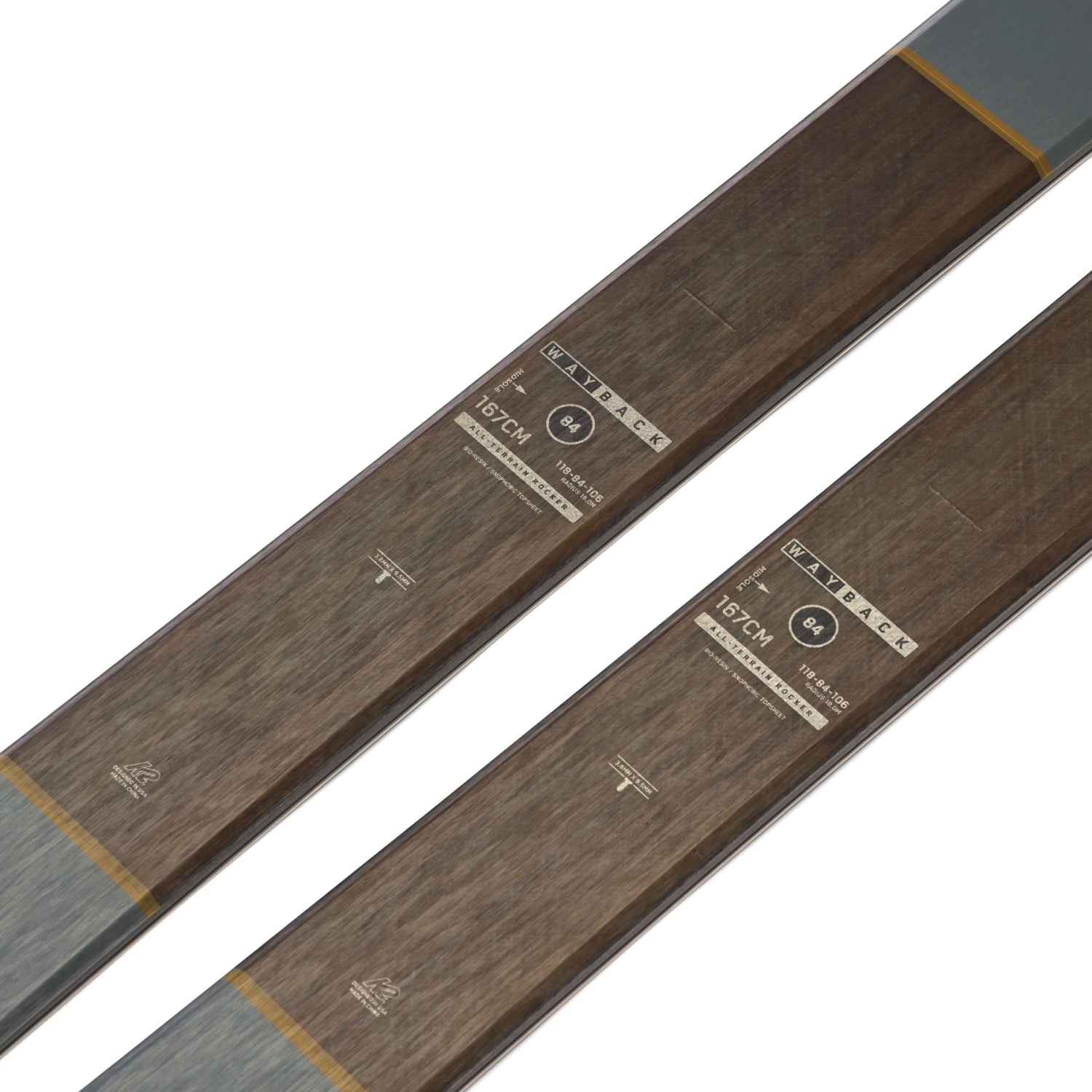 Το Wayback 84 είναι το πιο ευέλικτο σκι της συλλογής. Η κατασκευή του είναι απλοποιημένη σε σχέση με τα υπόλοιπα αδέρφια του, γεγονός που το κάνει ακόμα πιο παιχνιδιάρικο και ευκίνητο. Χάρη στις διαστάσεις και το πολύ χαμηλό βάρος του, το να ανεβοκατεβαίνεις το βουνό όλη την ημέρα ή ακόμα και να κάνεις πεζοπορία με τα πέδιλα στην πλάτη, είναι εξαιρετικά εύκολο. Ο συνδυασμός του εξαιρετικά ελαφρού πυρήνα Paulownia Tour Lite και του υδροφοβικού Snowphobic επάνω φύλλου, που εμποδίζει το χιόνι να κολλήσει στην επιφάνεια, βοηθάει το σκι να παραμένει ελαφρύ και ευκίνητο. Είναι πολύ εύκολο στο χειρισμό και η σύνδεση όμορφων στροφών σε φρέσκο χιόνι γίνεται χωρίς προσπάθεια. Το All-Terrain Rocker του διαθέτει σταδιακή ανύψωση στην μύτη για ευελιξία και μικρή ανύψωση στην ουρά για πρόσθετο έλεγχο. Το σύστημα K2 Skin Grommets είναι πολύ εύκολο στη χρήση και κάνει την προσάρτηση των skins μια απλή και αβίαστη διαδικασία. Είτε κατεβαίνετε τις πίστες του χιονοδρομικού, είτε κάνετε τις πρώτες σας βόλτες στις ήσυχες πλευρές του βουνού, ανεβείτε στα Wayback 84 και ζήστε την εμπειρία της χιονοδρομίας με έναν εντελώς νέο τρόπο!