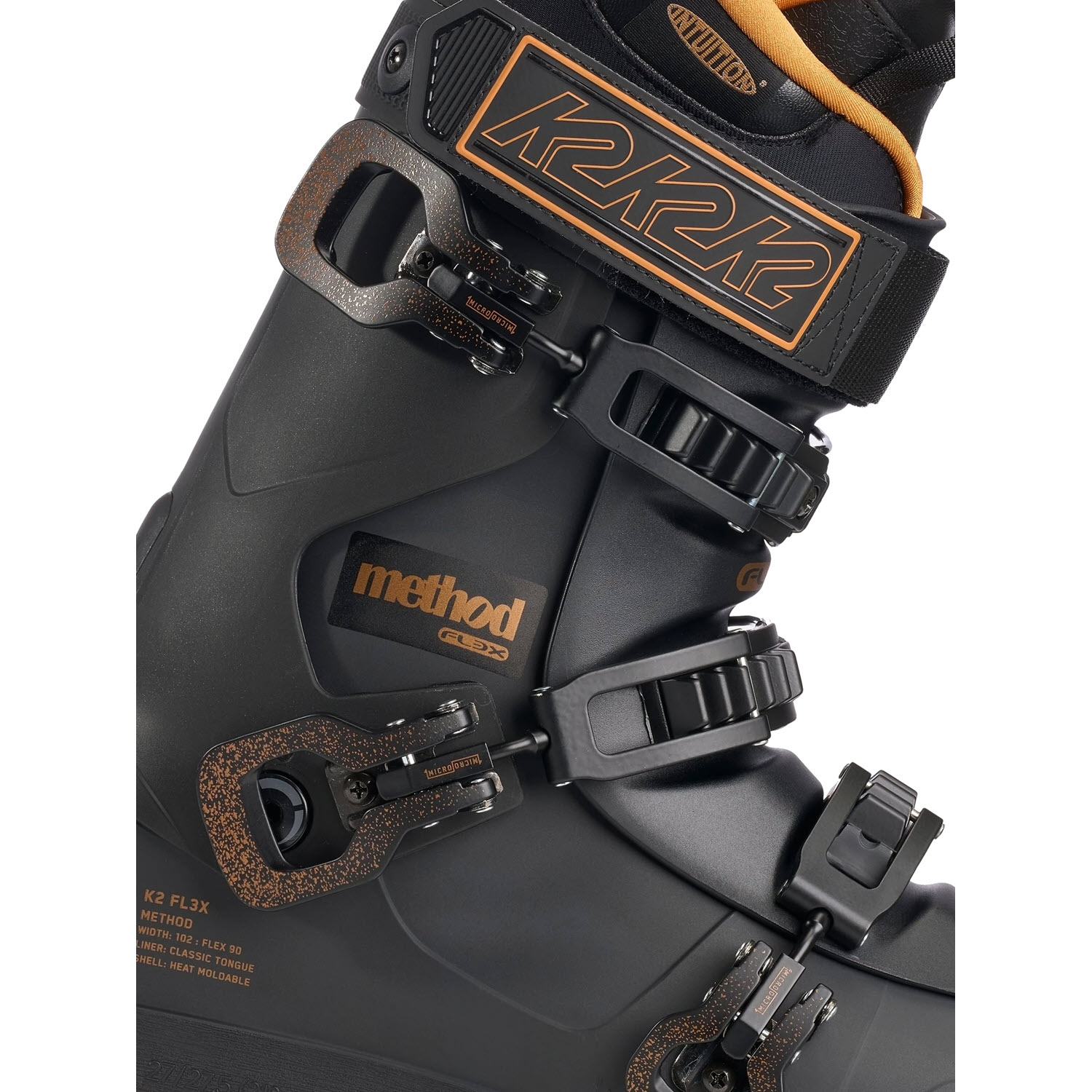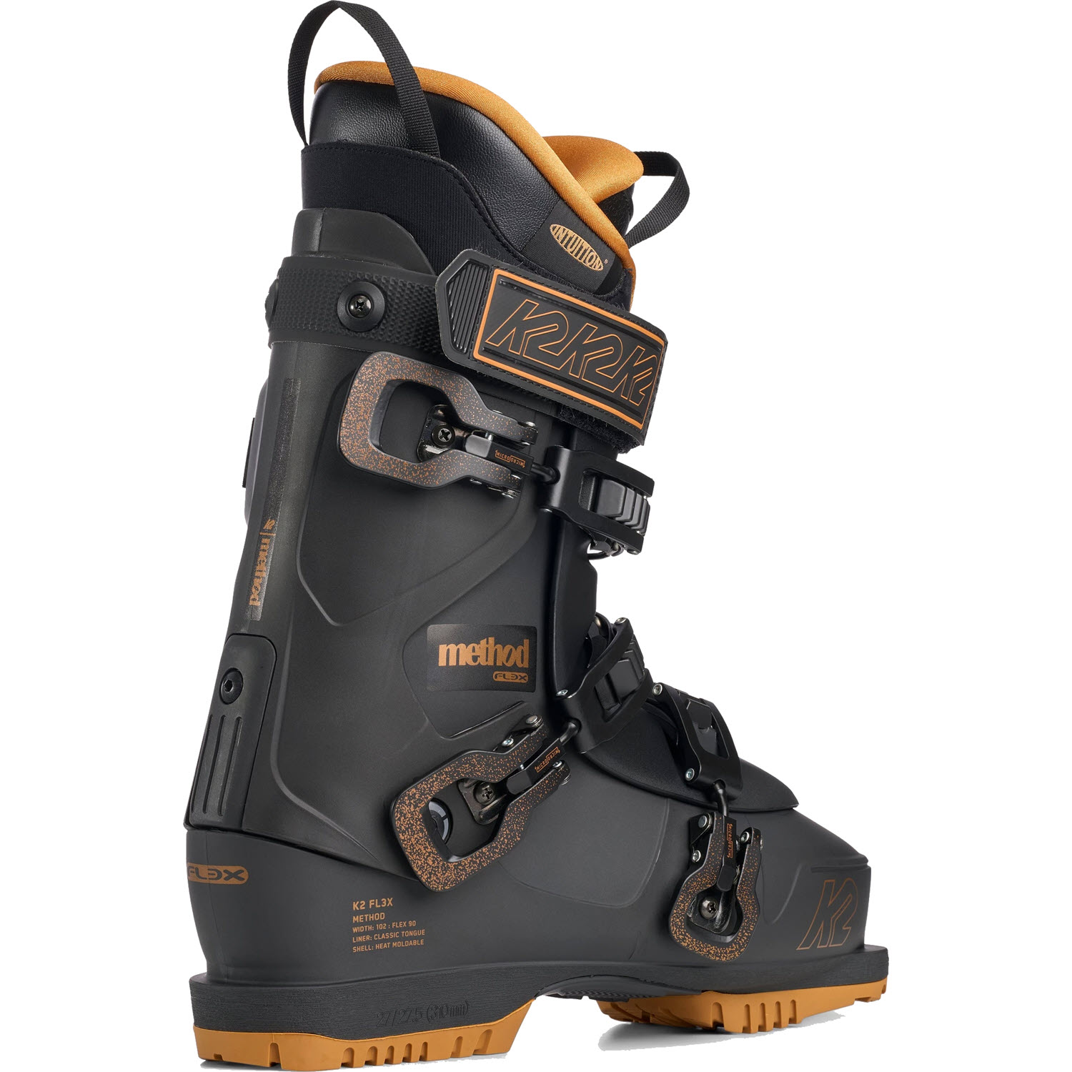 Η Κ2 FL3X Method είναι ιδανική για ελεύθερους σκιέρ που αναζητούν μια ευρύχωρη μπότα με συγχωρητική ευκαμψία. Διαθέτουν το Full Heat Moldable 102mm φάρδος, την επένδυση γλώσσας Easy Entry Intuition και μια εύκαμπτη γλώσσα 90 Flex βελτιστοποιημένη για το πάρκο. Η Κ2 FL3X Method είναι η καλή σας μπότα για να βελτιώσετε το παιχνίδι σας στο πάρκο ή απλά να κάνετε σκι σε όλο το βουνό με άνεση.Η Κ2 FL3X Method έχει σχεδιαστεί για να καλύπτει τις ανάγκες των αναβατών που αναζητούν πρόοδο και άνεση για το πάρκο. Ο συνδυασμός του Method Shell, της μαλακής εύκαμπτης γλώσσας flex 90, του πιο φαρδιού πέλματος 102 mm, της επένδυσης Intuition Tongue και της εξωτερικής σόλας Grip Walk κάνουν αυτή τη μπότα του σκι ένα ταλέντο στο πάρκο και στο δρόμο για κάθε μέρα. Χάρη στο σύστημα QuickFit™, όλες οι μπότες FL3X - συμπεριλαμβανομένων των κελυφών - μπορούν να προσαρμοστούν στις ακριβείς ανάγκες του ποδιού σας. Οι εξωτερικές σόλες GripWalk αφαιρούνται και αντικαθίστανται. Αυξάνουν το κράτημα και την άνεση όταν περπατάτε και στέκεστε με τις μπότες του σκι χωρίς συμβιβασμούς στη μετάδοση ισχύος.