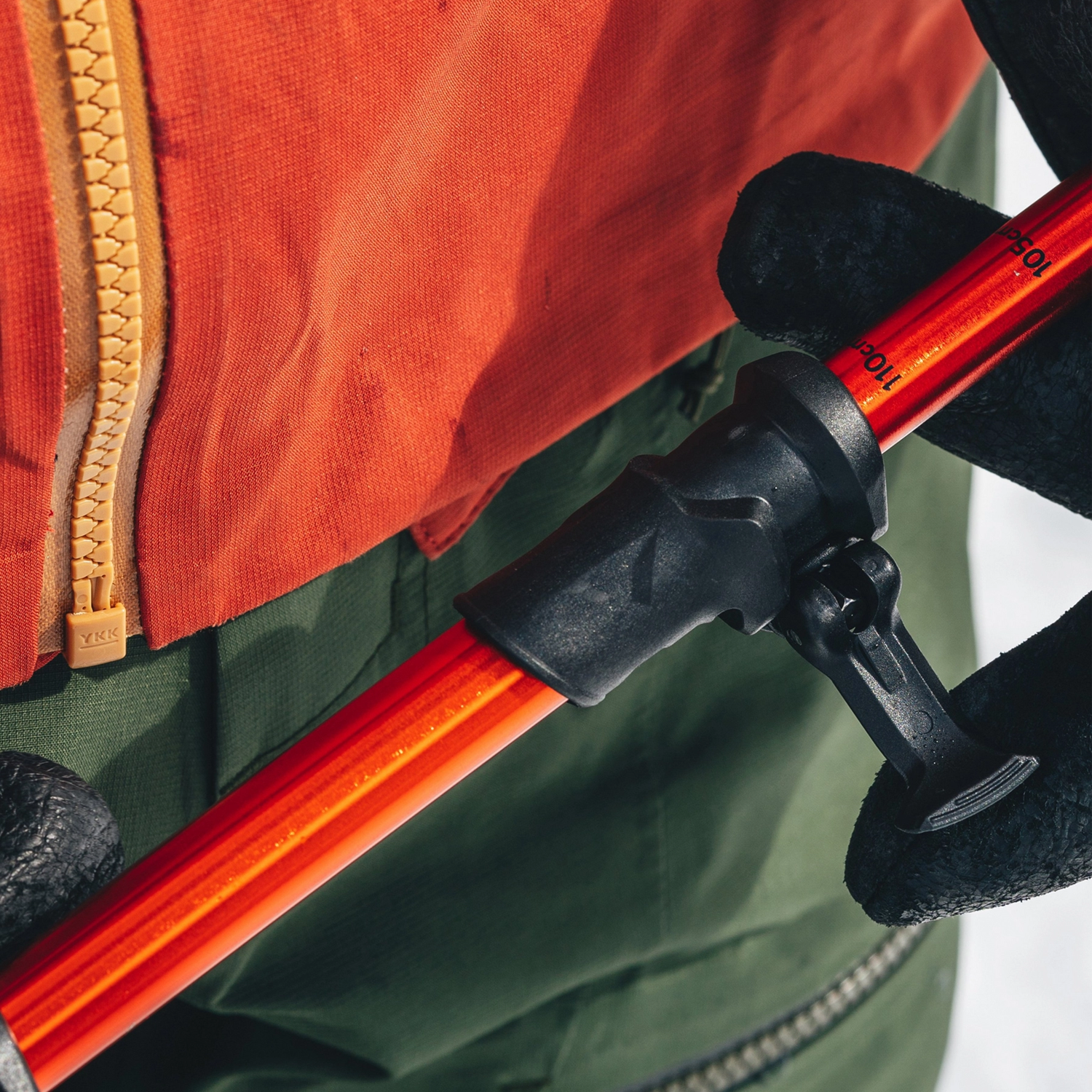 Το BCA Scepter 3S είναι ένα τηλεσκοπικό μπατόν τριών τμημάτων, κατάλληλο για όλες τις εποχές, σχεδιασμένο για ορειβατικό σκι, split-boarding και πεζοπορία, με όλα τα βασικά χαρακτηριστικά της γραμμής Scepter. Ο σφιγκτήρας LockJaw διευκολύνει τη ρύθμιση του μήκους του μπατόν. Η λαβή Scraper Grip διευκολύνει την απομάκρυνση χιονιού/πάγου από την επιφάνεια του ski/snowboard ή του skin, καθώς και την ρύθμιση μπότας/δέστρας. Ο ελεύθερος ιμάντας καρπού σας κρατά ανεξάρτητους από τα μπατόν σε περίπτωση που χτυπήσετε σε δέντρο ή, χειρότερα, σε περίπτωση πτώσης. Μπορείτε να χρησιμοποιείτε το βοηθητικό άγκιστρο στη λαβή για ανοιγοκλείνετε της μπότες σας χωρίς να σκύβετε. Ο άνω άξονας από αφρό EVA παρέχει ασφαλή και ελαφριά λαβή.
