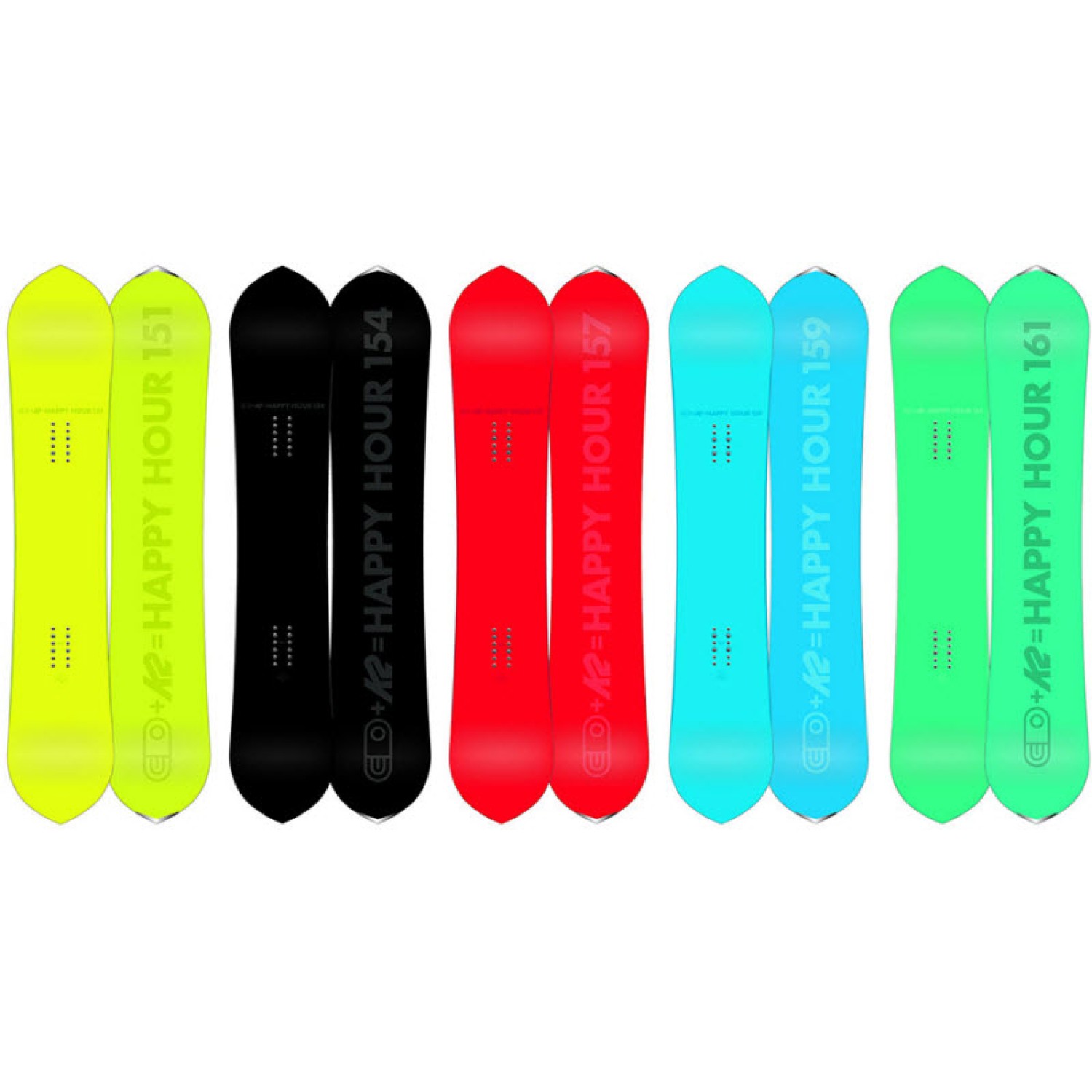To ολοκαίνουργιο K2 HAPPY HOUR είναι ένα το αποτέλεσμα του να αφήσεις την ομάδα raider της Κ2 να αυτοσχεδιάσουν και να κάνουν μόνοι τους ότι αυτοί θέλουν.Είμαστε τυχεροί γιατι κανείς δεν τραυματίστηκε. Αλλά το τελικό αποτέλεσμα είναι εκπληκτικό τόσο σαν τεχνολογία όσο και σαν design με πολύ παράφρων γραφικά .Eνα snowboard ισοροπημένο πολύ ευέλικτο έτοιμο να σας πάει παντού στο βουνό ,χτισμένο με πυρήνα ξύλο WH3 και με τα Ollie Bar απο Carbon και Kevlar για ακόμα μεγαλύτερη ισχύ.Είναι πολύ ξεκούραστο για να το οδηγείτε παντού στο βουνό και εφοδιασμένο με Flatline Rocker κατασκευή ,έτσι 'ωστε μπορεί να το χρησιμοποιήσει ο καθένας.
