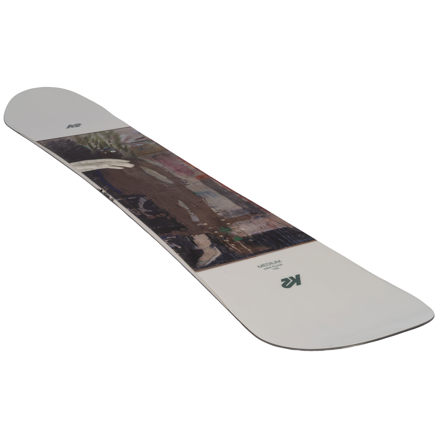 Η Κ2 εργάστηκε με τον Jake Kuzyk για να κατασκευάσει ένα snowboard που ανταποκρίνεται στα πρότυπα του - έτσι δημιουργήθηκε το Medium.Μια απλοποιημένη λήψη σε ένα κλασικό freestyle snowboard, το Medium είναι η τέλεια διασταύρωση της βελτίωσης και της υψηλής απόδοσης. Η έννοια του Medium προήλθε από το μυαλό του ίδιου του Τζέικ Κουζίκ. Ένας πραγματικός snowboarder του snowboard, ο Jake είναι μετριοπαθής, σχολαστικός και απίστευτα σκληρός, και οι τεχνικοί της Κ2 ξεκίνησαν να αντικατοπτρίζουν αυτά τα διακριτικά γνωρίσματα κατά τη δημιουργία του Medium. Μέσα από μερικές αναθεωρήσεις, συνεργαστήκαμε με τον Jake για να βρούμε τον τέλειο συνδυασμό ενός κλασσικού περιγράμματος, ενός εύχρηστου πυρήνα και μιας συνολικώς ευκίνητης αίσθησης - και έξω ήρθε το Medium. Μια γρήγορη βάση, κομψός πυρήνας, Carbon DarkWeb ™ και ένα κορυφαίο φύλλο Inked Glass ™ , δουλεύουν μαζί για να δημιουργήσουν μια κορυφαία twin tip σανίδα που διαθέτει απίστευτη δύναμη και μπορεί να αναλάβει οποιαδήποτε εργασία. Το Medium είναι η επιτομή του premium freestyle.