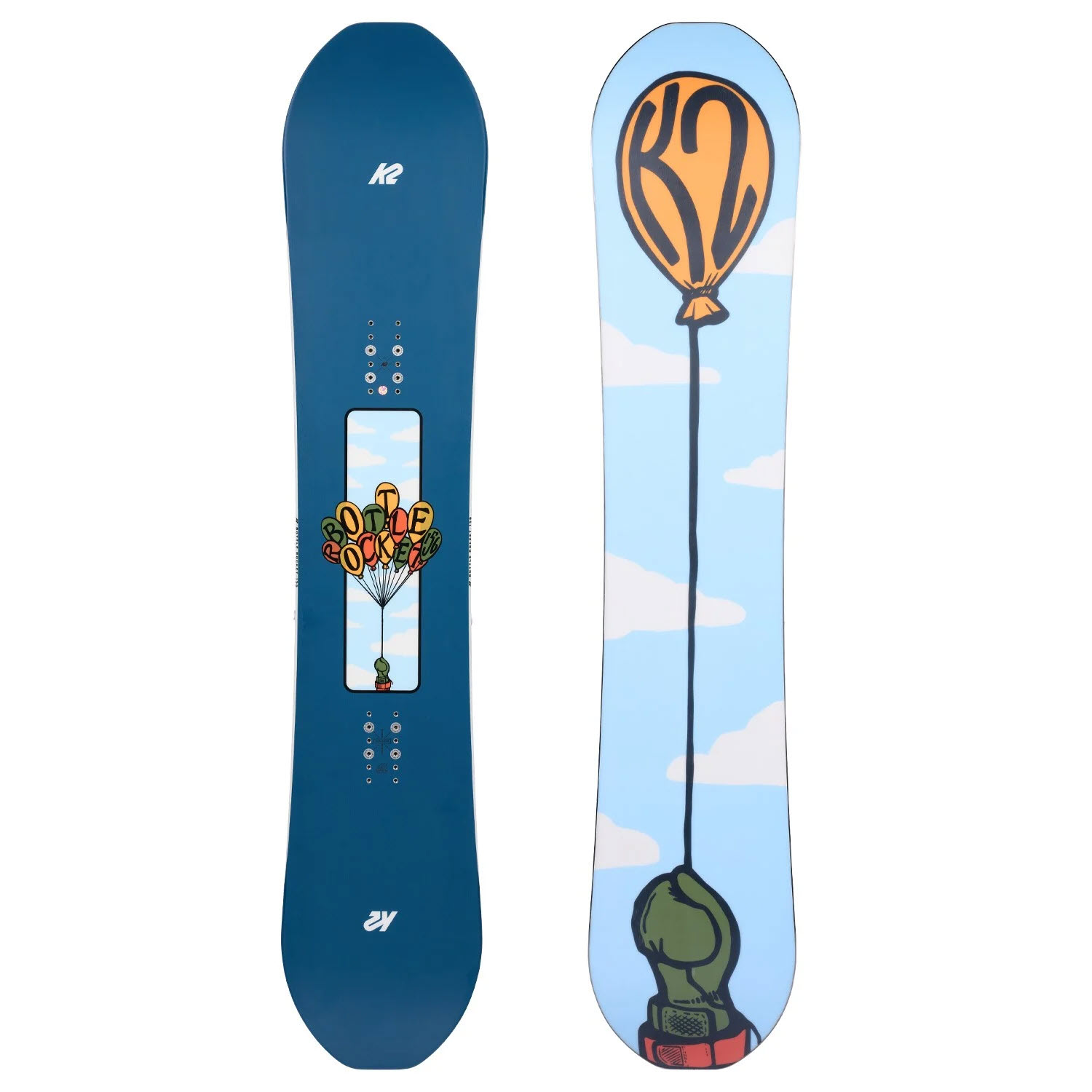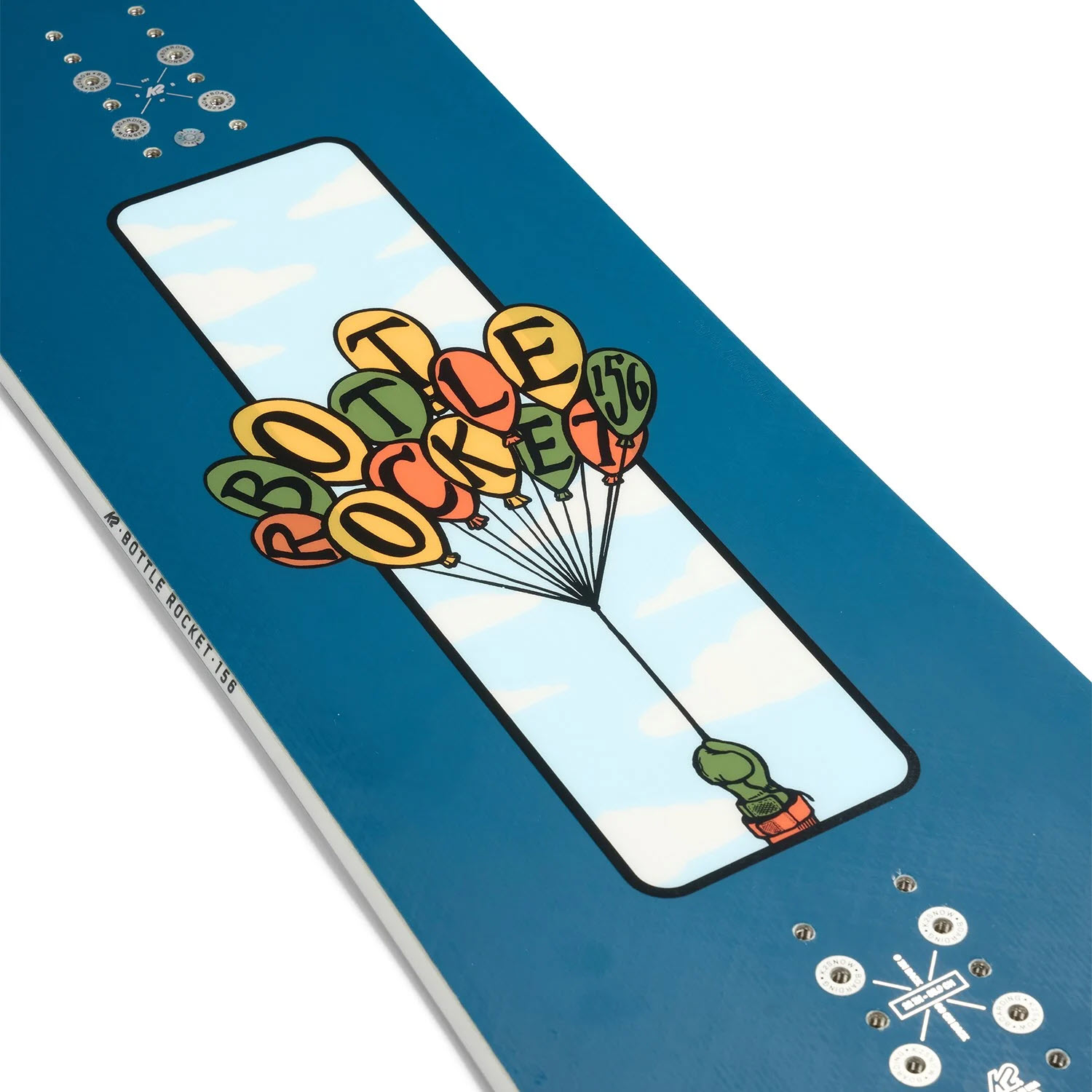 Χτισμένο σε ένα μεσαίο φάρδος, το K2 Bottle Rocket βρίσκεται στην κορυφή του BAP Core και του Twin Rocker Baseline ™ που κάνουν όλο το χιονοδρομικό να αισθάνεται σαν skatepark. Το νέο k2 Bottle Rocket πιάνει το σύγχρονο freestyle από τα κέρατα. Η Κ2 έχει διώξει την ανεκμετάλλευτη επιφάνεια του σανιδιού - κόβοντας 3-5 cm από το τυποποιημένο μήκος του σανιδιού, αυξάνοντας το πλάτος της μέσης, και ισοπέδωσε την άκρη και την ουρά αυτού δημιουργώντας ένα twin σχήμα για να παραδώσει τo καλύτερo float, μια αφρώδης ευελιξία, και τον πιο ακριβή έλεγχο. Με Freestyle Baseline ™ είναι ευέλικτο, με αρκετά ακριβές rocker στη μύτη και την ουρά για να σας δώσει και τα δύο μια αίσθηση βουτυρώδης και άμεση, ενεργητική ανταπόκριση. Το νέο K2 Bottle Rocket αποτελεί μια γιορτή της συνεχούς διασκέδαση, με τα Ollie Bar για ακόμα μεγαλύτερη ισχύ, σε συνδιασμό με την πολύ παιχνιδιάρικη κατασκευή Freestyle Rocker Tecnology , έχει σαν αποτέλεσμα ένα πολύ γερό και ισυρό twin tip freestyle σανίδι .