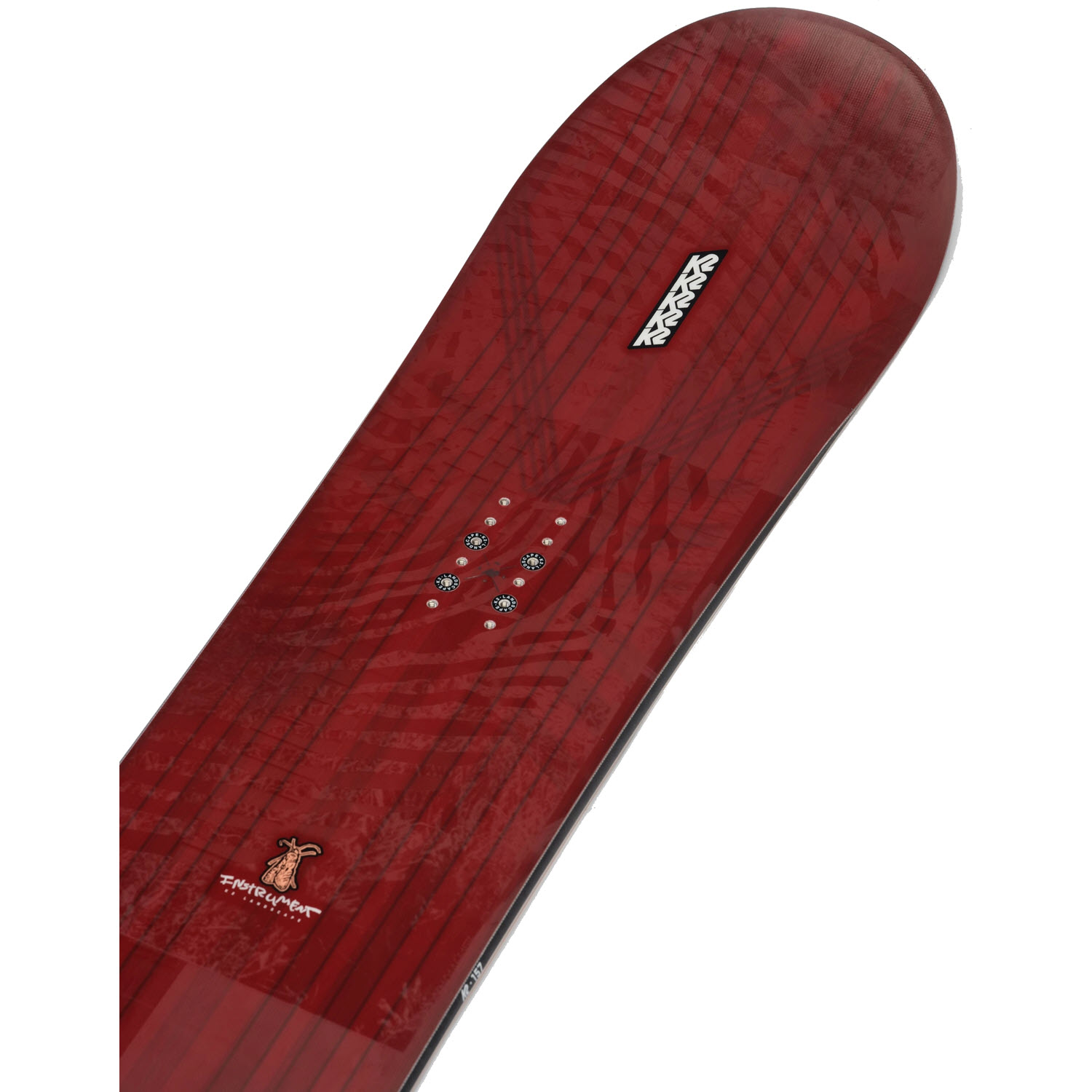 Είτε οδηγείτε για μία σεζόν ή είκοσι, το K2 Instrument είναι ένα κατευθυντικό snowboard freeride με παιχνιδιάρικη ατμόσφαιρα και προβλέψιμη αίσθηση που λατρεύει κάθε αναβάτης. Στα χέρια ενός αναβάτη, είναι ένα όργανο καταστροφής, στα χέρια (πόδια;) ενός άλλου, είναι καθοριστικό για μια επιτυχημένη ώρα παιχνιδιού. Το ολοκαίνουργιο K2 Instrument Snowboard είναι φτιαγμένο με φαρδύτερη μέση, μεσαίου μεγέθους εύκαμπτο προφίλ και απαλό κατευθυντικό σχήμα κατασκευασμένο για την χάραξη γλυκών γραμμών σε οποιαδήποτε επιφάνεια. Βάζει σφιχτά σόλο σε χωράφια με πούδρες, χτυπά ψηλές νότες στους groomers και παίζει ένα μέσο ρυθμό με το κομμάτι. Δεν είναι απλώς ένα όργανο, είναι ένα μονοκόμματο συγκρότημα.