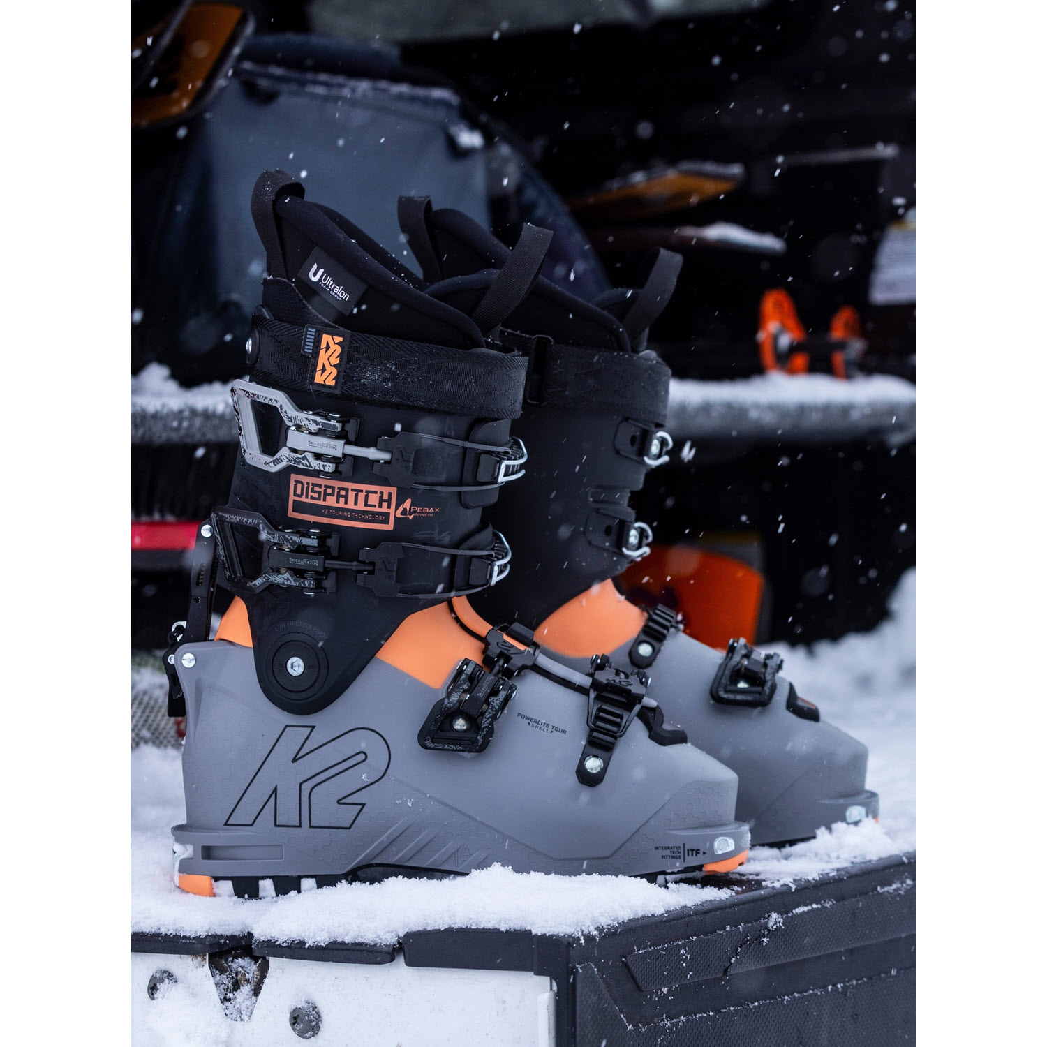 Όταν καλεί η περιπέτεια, η Dispatch απαντά. Αυτή η ολοκαίνουργια, ειδική γυναικεία μπότα σκι turing είναι ο ιδανικός καθημερινός οδηγός για κάθε αποστολή στην ύπαιθρο. Έρχεται με βαθμολογία flex 105 και κατασκευασμένη με τη χυτεύσιμη επένδυση Tourfit με πλήρως θερμότητα, η μπότα Dispatch αξιοποιεί τις σόλες Vibram και το εύρος κίνησης 60 μοιρών λειτουργίας περπατήματος για να δημιουργήσει μια διαισθητική εμπειρία ανηφόρας διατηρώντας παράλληλα την κορυφαία απόδοση στην κατάβαση. Σκιέρ backcountry, γνωρίστε τον νέο σας συνεργάτη αναρρίχησης. K2 Dispatch Alpine Touring Ski Boots, συναντήστε τα πόδια που πρόκειται να σας οδηγήσουν σε νέα ύψη. Μαζί, θα σκαρφαλώσετε βουνά, θα κατεβείτε κομμάτια και θα περάσετε μέσα από παγωμένα ξέφωτα. Για εσάς, σκιέρ, αυτές οι μπότες θα σας προσφέρουν την ελαφριά απόδοση, το φοβερό εύρος κίνησης, τον ισχυρό χειρισμό στην κατηφόρα και την αξιόπιστη λαβή που χρειάζεστε για να στέκεστε σταθερά και να κινείστε σαν σε ράγες οδοντωτού σε παγωμένο έδαφος. Διασκεδάστε μαζί και απολαύστε τη βόλτα.