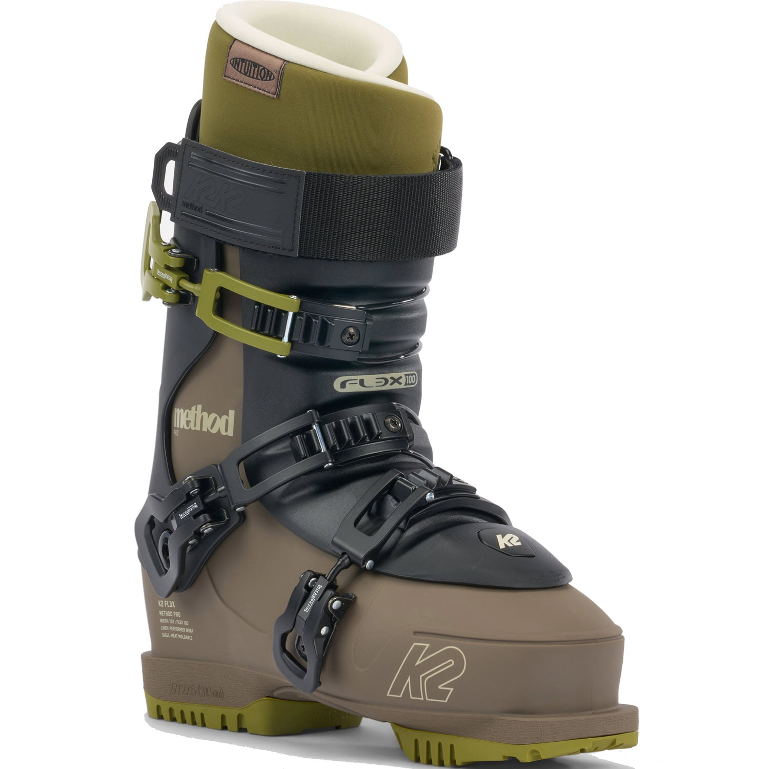 Από τις πρώτες ώρες στις πίστες μέχρι το apres και οτιδήποτε ενδιάμεσο, η FL3X Method Pro είναι η ιδανική μπότα freestyle για όποιον θέλει να δώσει προτεραιότητα στην άνεση και τις επιδόσεις σε όλο το βουνό. Διαθέτουν τις ευρύχωρες κορυφαίες επενδύσεις τελευταίας τεχνολογίας 102 mm, το βελούδινο Intuition Wrap και τις σόλες Gripwalk. Η TheMethod Pro θα πλοηγείται άνετα κάθε μέρα στο θέρετρο.Η Κ2 FL3X Method έχει σχεδιαστεί για να καλύπτει τις ανάγκες των αναβατών που αναζητούν πρόοδο και άνεση για το πάρκο. Ο συνδυασμός του Method Shell, του μεσαίου flex 100, του πιο φαρδιού πέλματος 102 mm, της επένδυσης Intuition Tongue και της εξωτερικής σόλας Grip Walk κάνουν αυτή τη μπότα του σκι ένα ταλέντο στο πάρκο και στο δρόμο για κάθε μέρα. Χάρη στο σύστημα QuickFit™, όλες οι μπότες FL3X - συμπεριλαμβανομένων των κελυφών - μπορούν να προσαρμοστούν στις ακριβείς ανάγκες του ποδιού σας. Οι εξωτερικές σόλες GripWalk αφαιρούνται και αντικαθίστανται. Αυξάνουν το κράτημα και την άνεση όταν περπατάτε και στέκεστε με τις μπότες του σκι χωρίς συμβιβασμούς στη μετάδοση ισχύος.
