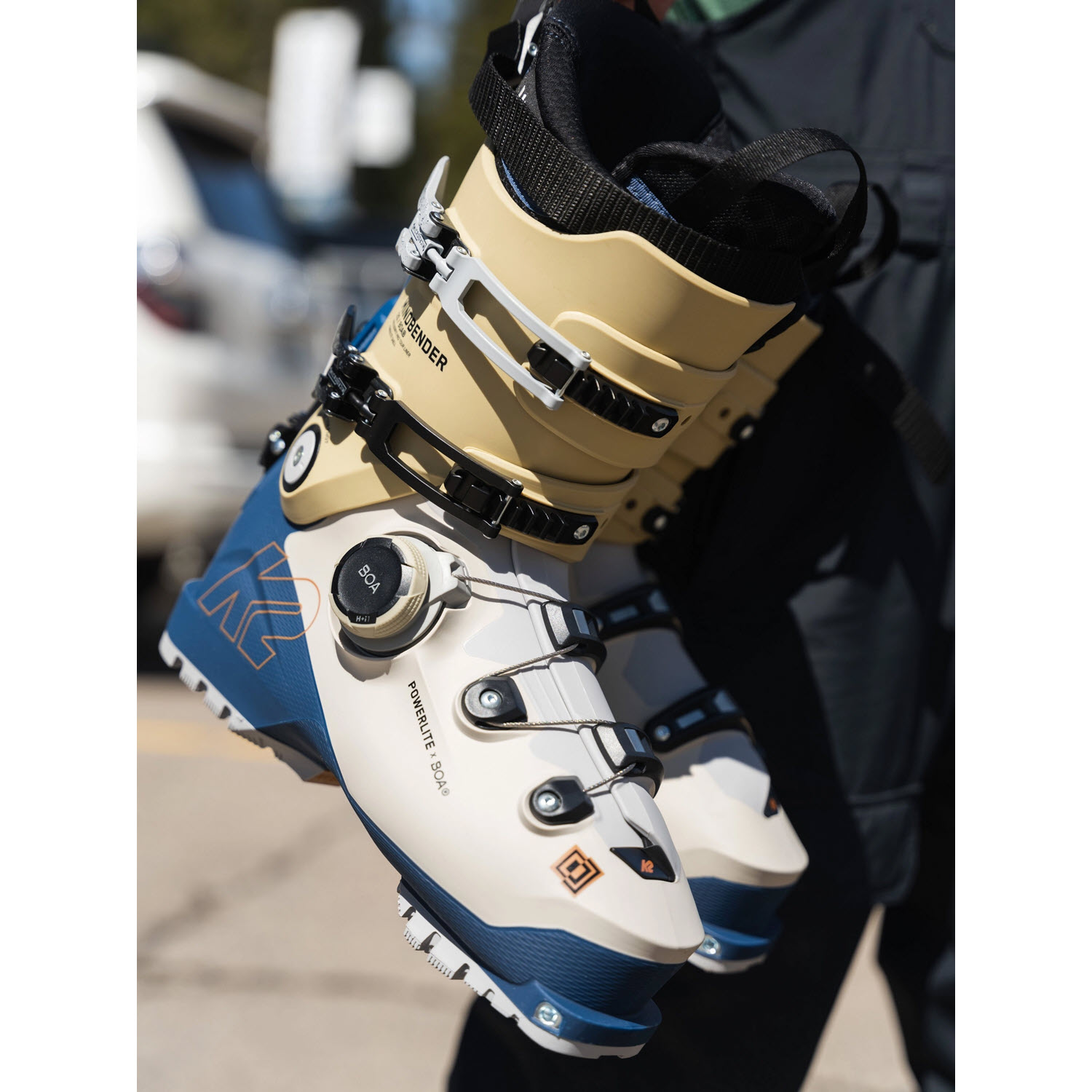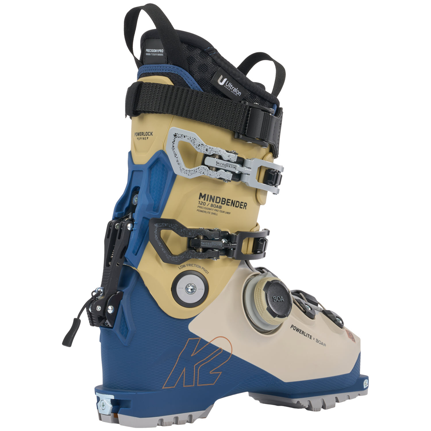 Η μπότα Mindbender120 συνεχώς το best-seller στη δημοφιλή σειρά Mindbender, πλήρως προσαρμόσιμη τώρα και με BOA® συνδυάζει μια κατασκευή Powerlite Shell που μπορεί να χυτευθεί με θερμότητα με τη μικρο-προσαρμογή του συστήματος BOA® Fit System και του MultiFit Last με αποτέλεσμα απαράμιλλη απόδοση και εφαρμογή. Αυτές οι μπότες είναι γεμάτες τεχνολογία με μεγάλα γράμματα – με FastFit instep για εύκολη είσοδο και έξοδο, καθώς και ενσωματωμένα τεχνολογικά εξαρτήματα και λειτουργία περπατήματος Powerlock Spyne με εύρος κίνησης 50 μοιρών. Οι μπότες Mindbender 120 BOA® είναι ιδανικές για τον freeride σκιέρ που αναζητά μία μπότα για να τα κάνει όλα. Η Mindbender 120 BOA® είναι δύσκολο να νικηθεί. Με μια απλή και αποτελεσματική λειτουργία περιπάτου με μια κλήση 50˚ κίνησης, ετοιμαστείτε να έχετε τη Mindbender να κάνει τα πάντα αναθεωρόντας τις προκαταλήψεις σας σχετικά με το τι μπορεί να κάνει μια μπότα touring. Συνδυάζοντας τέσσερα διαφορετικά πλαστικάTPU με ένα βέλτιστο πάχος κελύφους για να κατασκευάσει το ολοκαίνουριο κέλυφος Powerlight, κατασκευάζοντας μια μπότα σχεδιασμένη για ελίτ επιδόσεις με το μικρότερο δυνατό βάρος της αγοράς . Το Stiffer PU είναι στρατηγικά τοποθετημένο στα σημεία όπου η μπότα συναντά τις δέστρες και κατά μήκος της σπονδυλικής στήλης της μπότας για άμεση μεταφορά ισχύος, ενώ η μέση και μαλακή PU περιβάλλει το σώμα του ποδιού και κοντά στο τοίχωμα για να εμποδίζει τους κραδασμούς να εισέλθουν στο πόδι. Το κέλυφος είναι πλήρως θερμοπλαστικό TPU, έτσι ώστε κατά τη διάρκεια θερμικής επεξεργασίας η μπότα να εφαρμόζει τέλεια στα συγκεκριμένα χαρακτηριστικά των ποδιών σας. Η λειτουργία εισόδου Fastfit βοηθά στην εκκίνηση και την απενεργοποίηση της εκκίνησης με ευκολία. Διατίθεται σε πλάτos MultiFit™ Last .Tο MultiFit™ Last αναπτύχθηκε σε συνδυασμό με το σύστημα BOA® Fit System για να φιλοξενεί μια ποικιλία σχημάτων ποδιών που κυμαίνονται από 97 mm έως 100 mm φτάνοντας όμως και έως 104 mm* με χύτευση θερμότητας). Το αποτέλεσμα είναι ένα ότι η νέα K2 MINDBENDER BOA είναι η κορυφαίας εφαρμογής μπότα Freeride-touring αλλα και πίστας στην αγορά.