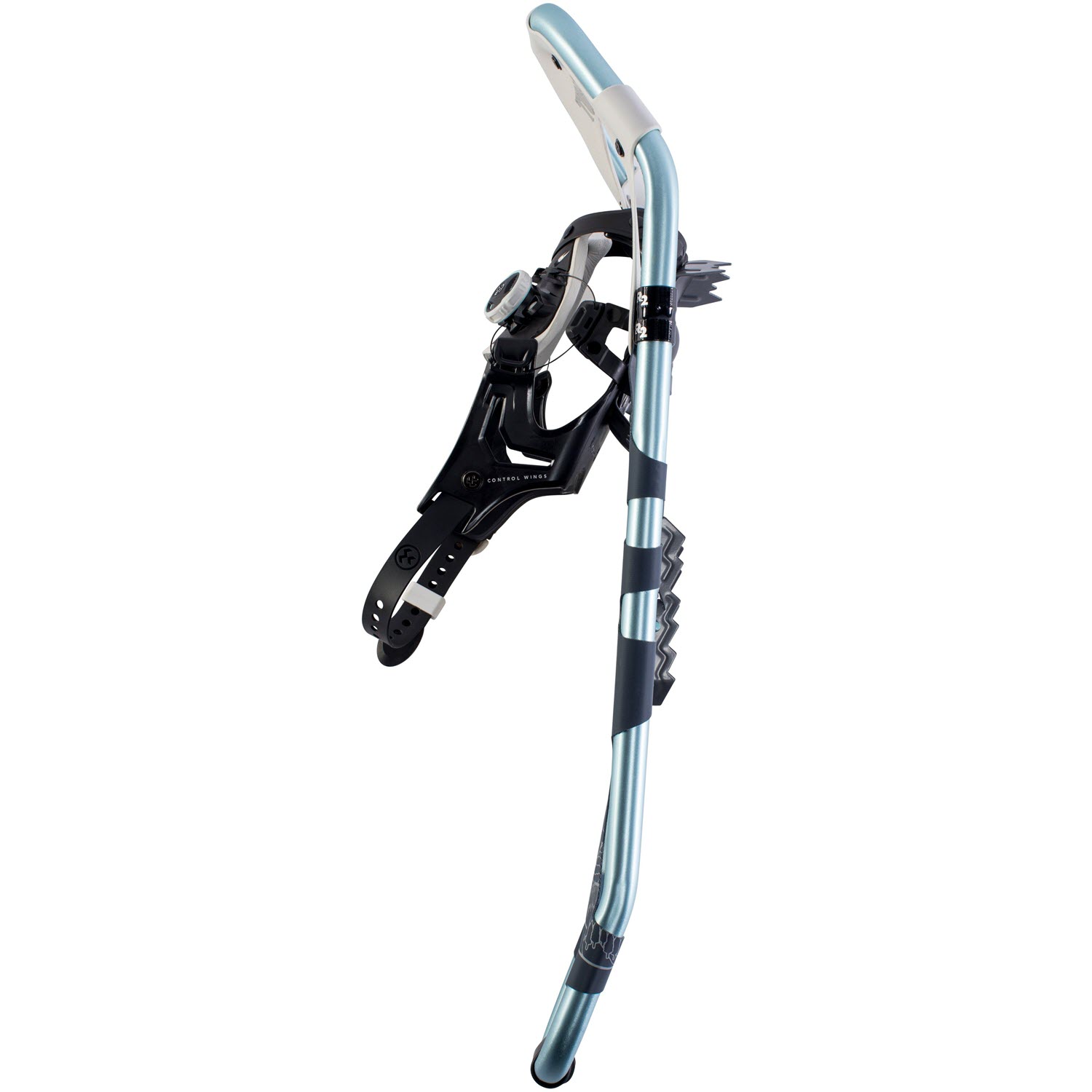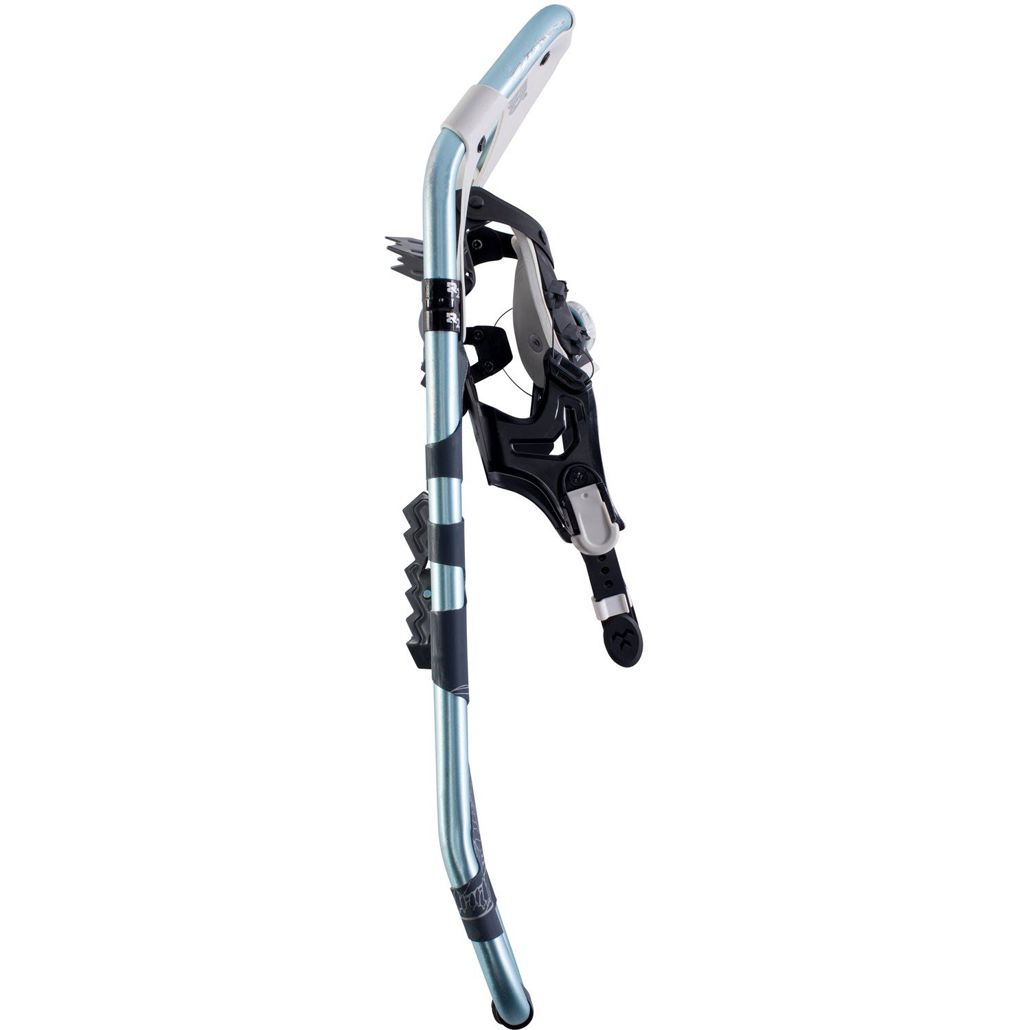 Άρθρωση: Σύστημα αρθρώσεων περιστρεφόμενου toe κορδονιού : Ο σχεδιασμός περιστρεφόμενου καλωδίου Toe επιτρέπει την πτώση της ουράς του χιονοπέδιλου, ρίχνοντας χιόνι από την ουρά. Όταν ευθυγραμμίζονται, τα δόντια στην πρόσφυση των ποδιών δαγκώνουν βαθιά στο χιόνι.