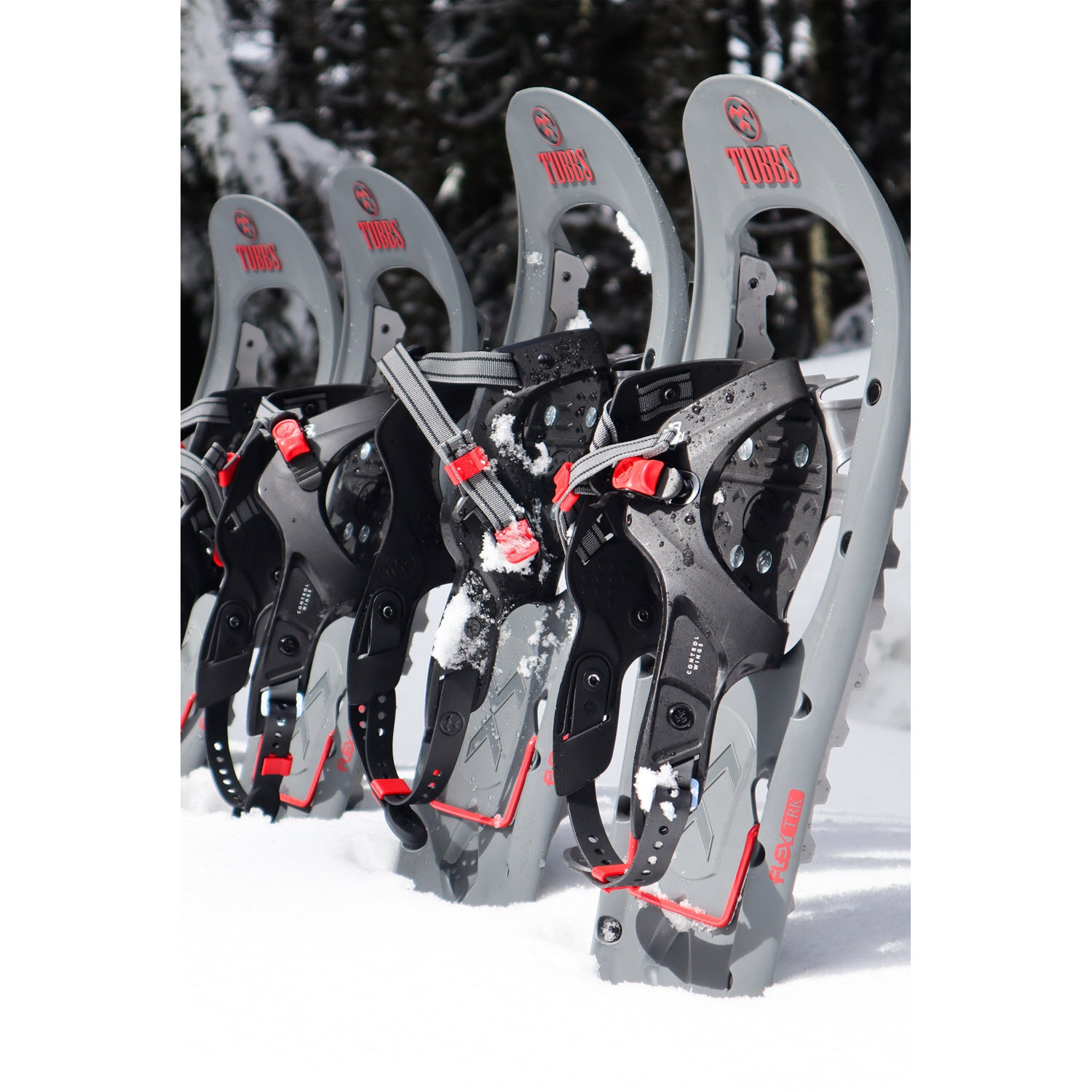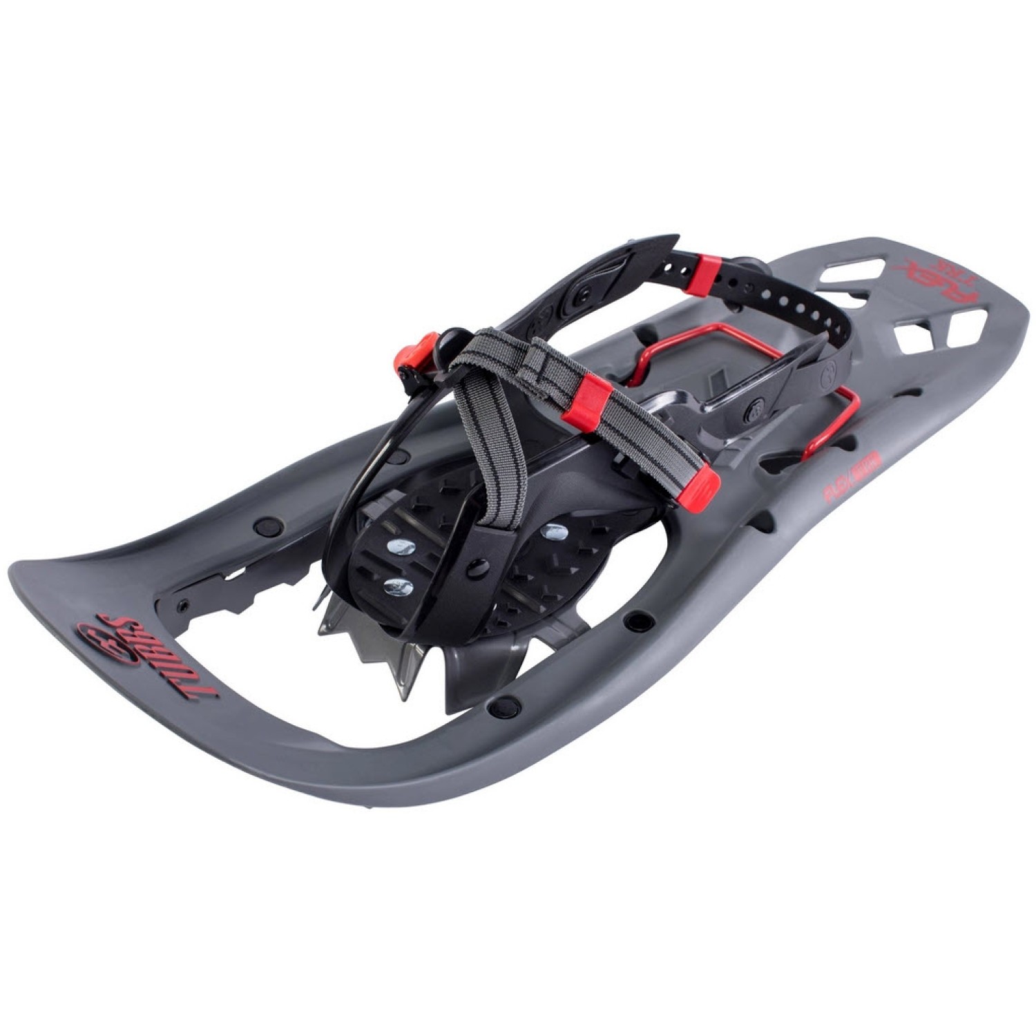 Οι Tubbs Flex Trk 24 χιονορακέτες είναι πολλαπλών χρήσεων, σχεδιασμένες να προσφέρουν εξαιρετική πρόσφυση σε μεταβλητές συνθήκες, από τον κηλιδωμένο πάγο έως το φρέσκο χιόνι. Οι ανυψωτήρες φτέρνας βελτιώνουν την απόδοση στις κλίσεις. Το φορμαρισμένο deck Flex αυξάνει την άρθρωση, επιτρέποντας στα παπούτσια να καμφθούν πραγματικά με το βήμα σας για να βελτιώσουν τόσο την πρόσφυση όσο και την ευελιξία. Η χρήση των "κλαδιών", ενός στενού, κωνικού προφίλ και λεπτότερου υλικού σε κάθε άκρο των παπουτσιών διατηρεί το βάρος στο ελάχιστο διατηρώντας παράλληλα την επίπλευση. Η μοναδική ουρά Tubbs flex απορροφά το κραδασμό των πτερύγων, μειώνοντας την πίεση στις αρθρώσεις σας και επιτρέποντάς σας να διατηρήσετε ένα φυσικό, άνετο βήμα. Οι νέες δέστρες 180 EZ παρέχουν έναν απλό μηχανισμό σύσφιξης με μία πόρπη, σε συνδυασμό με εύκολες στη χρήση φτερούγες και ένα ιμάντα φτέρνας για αποτελεσματική, ελαφριά υποστήριξη. Ένας ενσωματωμένος ανυψωτήρας πτερύγιου ActiveLift μειώνει την κόπωση κατά την πεζοπορία σε κλίσεις. Οι κούμπες toe και οι μικρο-οδοντωτές τρισδιάστατες καμπυλωμένες ράγες έλξης εξασφαλίζουν ανώτερη λαβή στο πίσω μέρος σε δύσκολες και παγωμένες συνθήκες. Το καμπύλο σχήμα των σιδηροτροχιών βοηθά στην παρεμπόδιση της πρόσθιας ολίσθησης σε απότομο έδαφος.
