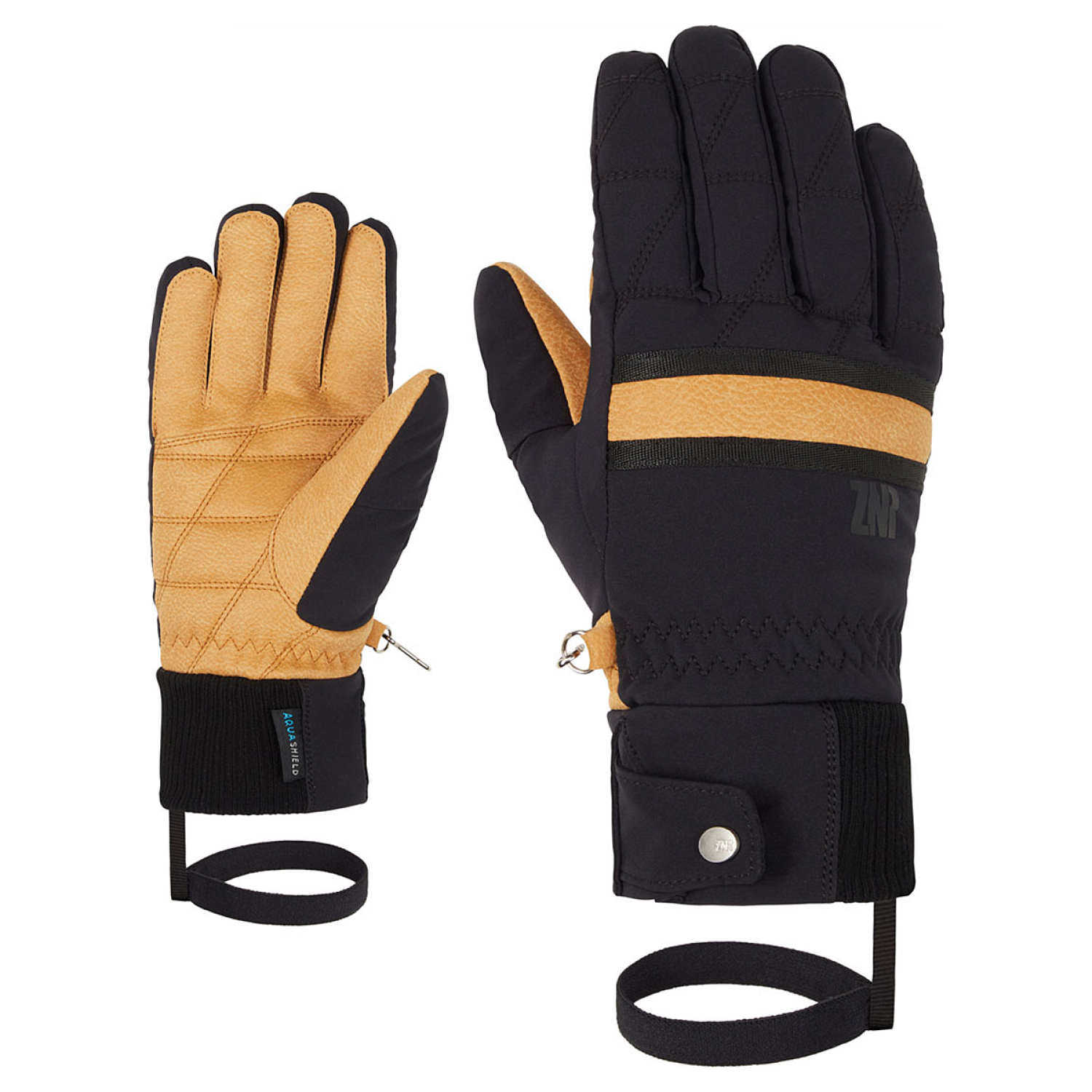 Τα μοντέρνα, ζεστά γυναικεία γάντια Ziener KABBI AS® LADY της νέας συλλογής ZNR είναι εξοπλισμένα με θερμαινόμενη βελούδινη επένδυση και, χάρη στην αδιάβροχη μεμβράνη ZIENER AQUASHIELD®, εξασφαλίζουν βέλτιστη προστασία, ζεστασιά ακόμη και σε αντίξοες καιρικές συνθήκες. Το ανακυκλωμένο PERFORMANCE SUEDE προσφέρει βέλτιστη αίσθηση και κράτημα στα μπατόν του σκι καθώς και άνεση. Το ελαστικό λουρί εμποδίζει τα γάντια να χαθούν και τους επιτρέπει να τα βγάλετε ή να τα ξαναφορέσετε γρήγορα όταν χρειαστεί. Η ελαστική πλεκτή μανσέτα εξασφαλίζει άνετη εφαρμογή στον καρπό. Όλα τα στυλ μπορούν να συνδυαστούν τέλεια με την ολοκαίνουργια συλλογή ZNR, η οποία ξεχωρίζει με τα casual και cool outfit της. Τα γάντια είναι κατασκευασμένα από υλικά χωρίς PFC.