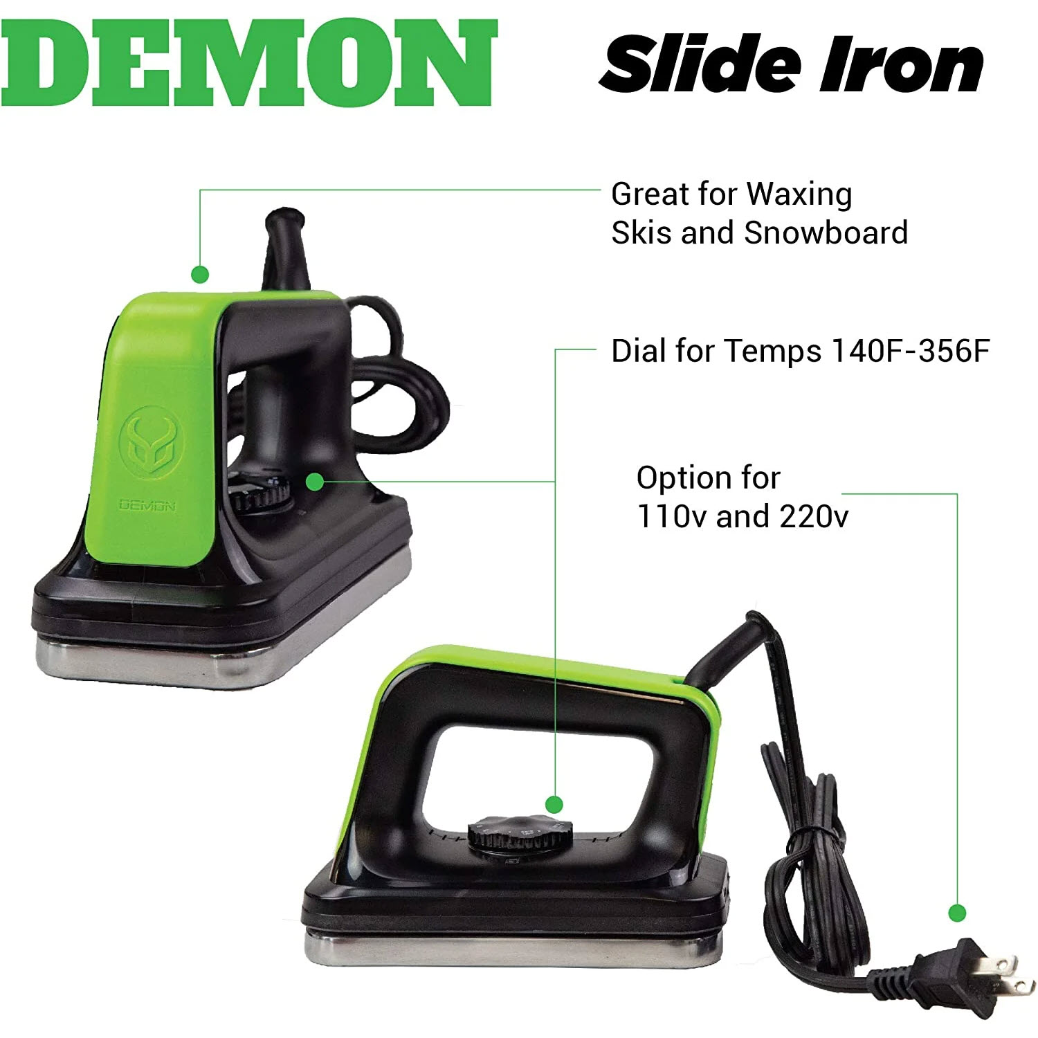 Προδιαγραφές Dual Voltage Iron: Αυτό το Travel Edition Slide Iron είναι ικανό να χρησιμοποιεί 220v. Ρυθμιζόμενη θερμοκρασία Demon Wax Iron με δυνατότητα διπλής τάσης. Ο εύκολος επιλογέας θερμοκρασίας προσαρμόζεται από χαμηλή σε υψηλή και επιτρέπει πολλές επιλογές θερμότητας για να λιώσετε το κερί σας σωστά.