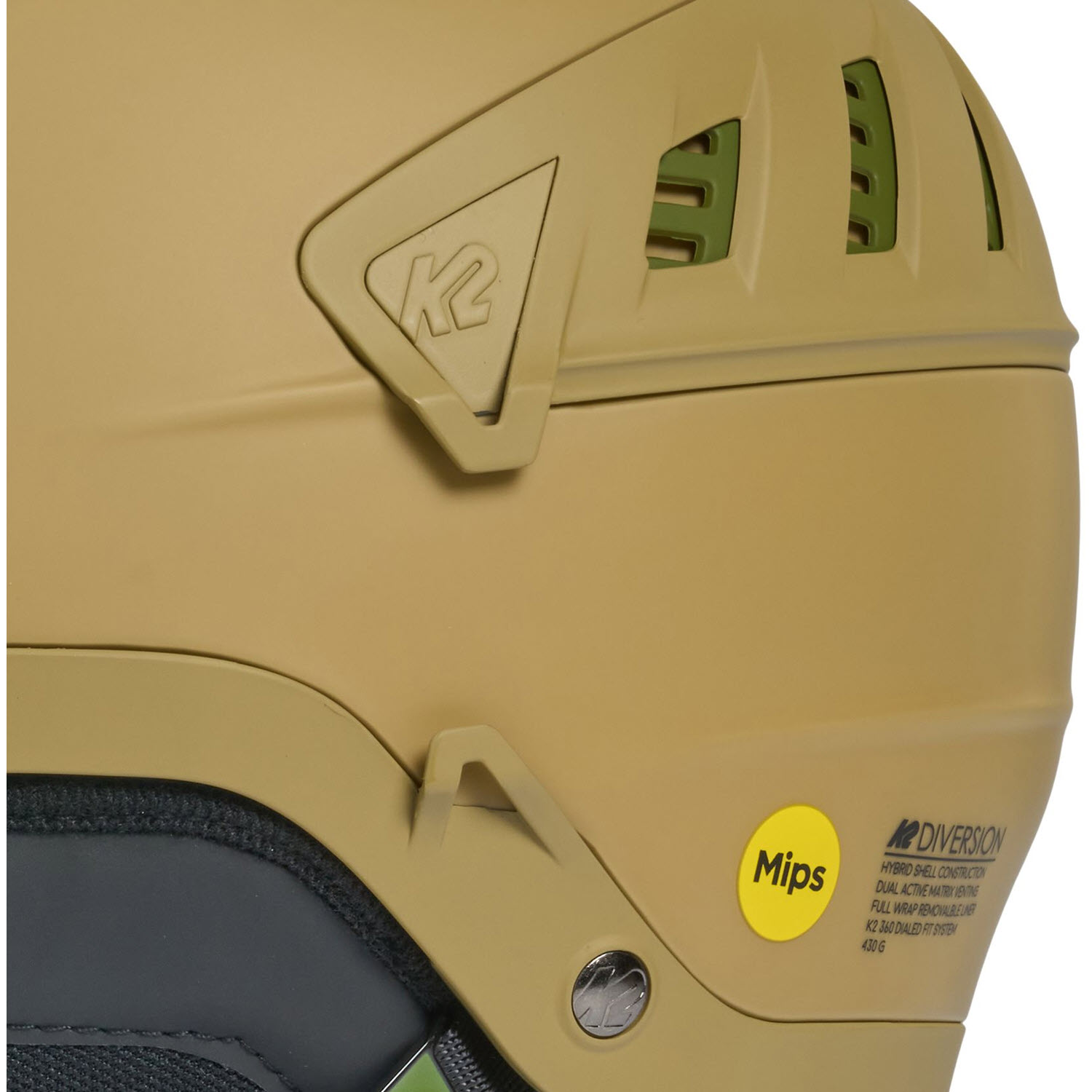 Tο Diversion Mips από την K2, είναι ένα κράνος σκι και σνόουμπορντ για άνδρες. Είναι το κορυφαίο μοντέλο της K2 που επωφελείται από όλες τις τελευταίες τεχνικές καινοτομίες όσον αφορά την άνεση, την ασφάλεια και το σχεδιασμό. Ελαφρύ, εξαιρετικά καλά αεριζόμενο και πολύ ασφαλές, το Diversion θα σας προστατεύσει σε κάθε περίπτωση. Το νέο σύστημα Dual Active Matrix επιτρέπει τον έλεγχο εξαερισμού τόσο από τον χρήστη όσο και από τον παθητικό αερισμό για να επιτευχθεί η επιθυμητή θερμοκρασία και ροή αέρα. Εκτός από τον ρυθμιζόμενο αερισμό, οι χρήστες μπορούν επίσης να αποκτήσουν 100% προσαρμοσμένη σύσφιξη με ομοιόμορφη κατανεμημένη πίεση χάρη στο σύστημα ρύθμισης 360 K2dialed ™.