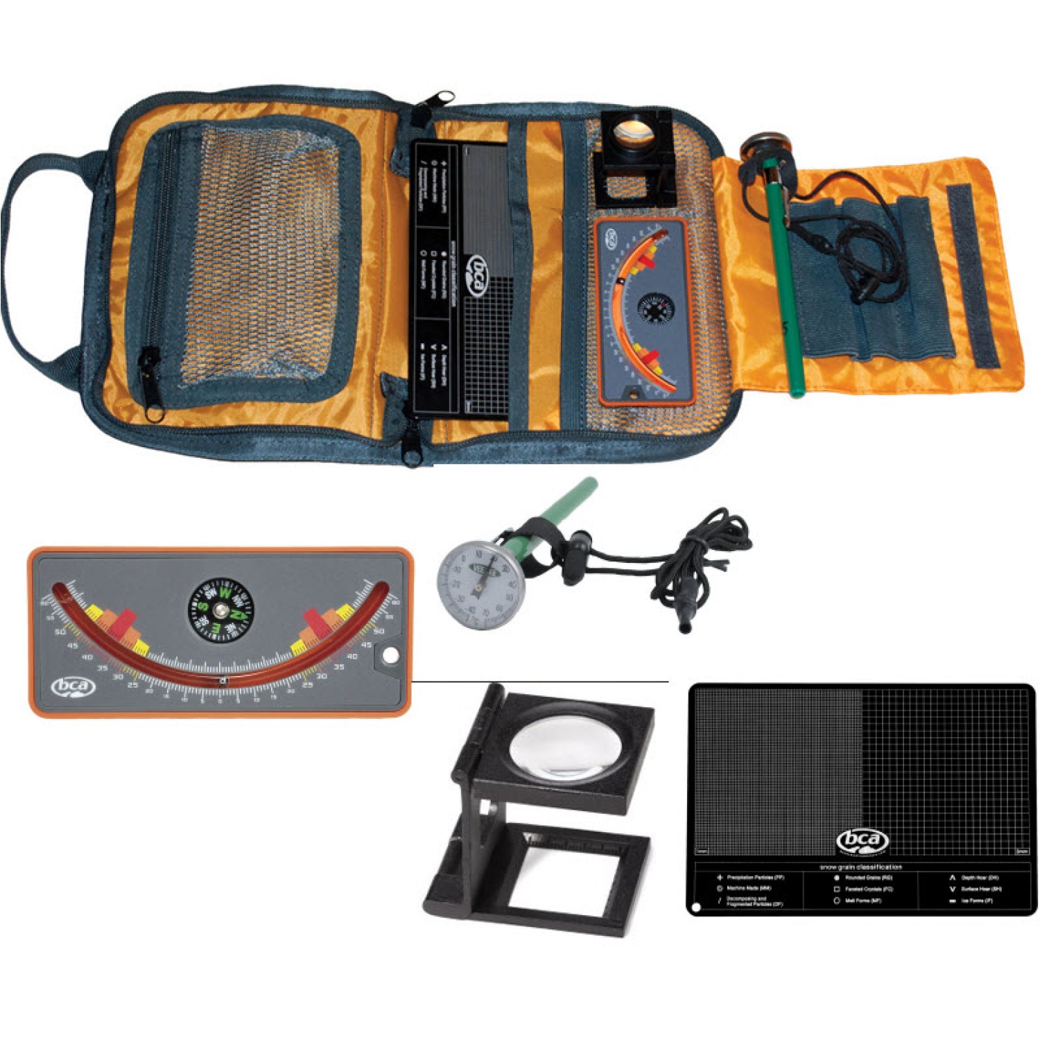 Οργανώστε όλα τα απαραίτητα εργαλεία μελέτης χιόνι σας μαζί σε ένα φερμουάρ, σε ανθεκτική υφασμάτινη θήκη, που είναι εξοπλισμένα με ένα μετρητή κλίσης, κάρτα αλουμινίου κρύσταλλο, 10x μεγεθυντικό φακό, και αναλογικό θερμόμετρο. Η Προηγμένη τεχνολογία BCA των εργαλείων μελέτης χιονιού σας επιτρέπουν να συγκεντρώσετε όλες τις πληροφορίες που χρειάζεστε για την πορεία σας στο backcountry. Αυτά τα εργαλεία έχουν σχεδιαστεί σε συνδυασμό με τους πιο έμπειρους εκπαιδευτές αντιμετώπισης χιονοστιβάδας της Βόρειας Αμερικής.