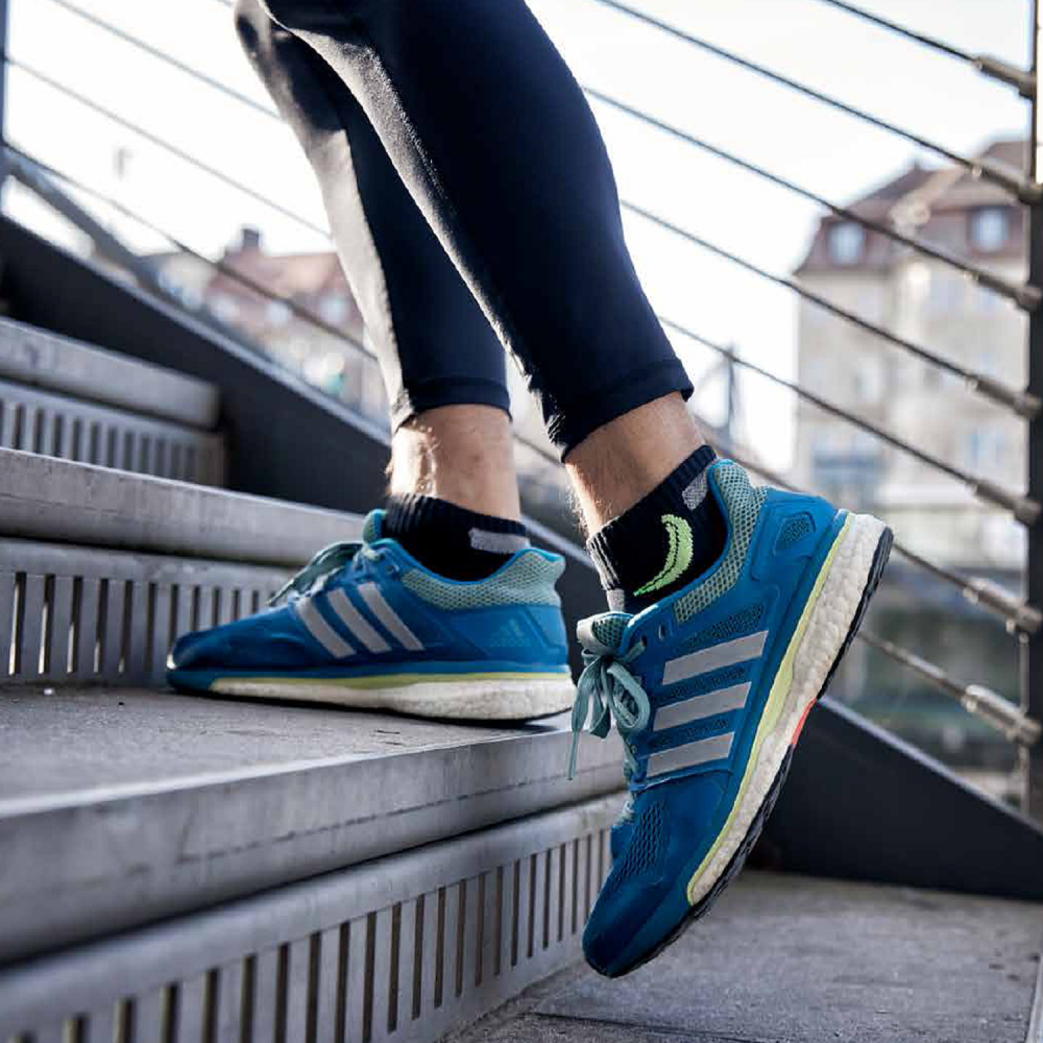 Τεχνολογικά Χαρακτηριστικά : Τεχνική εφαρμογή R/L, ελαφρύ νήμα υψηλής απόδοσης Dryarn®, ενίσχυση CellTech στο πέλμα, τεχνολογία ενάντια στις φουσκάλες, ελαστικές μανσέτες, υποστήριξη της καμάρας, ενσωματωμένα ανακλαστικά στοιχεία για καλύτερη ορατότητα.
