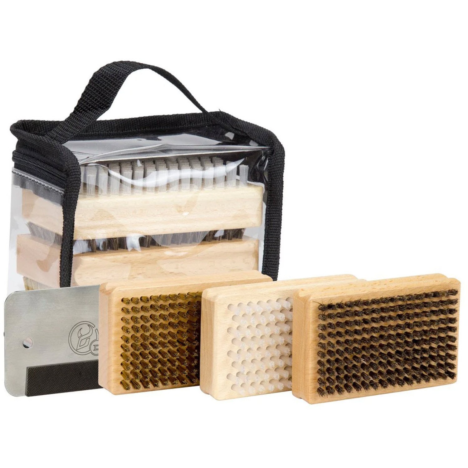 Συμπεριλαμβανόμενα εργαλεία: Edge Tuner για γωνίες πλευρικών άκρων 88 / 90 μοιρών (περιλαμβάνεται βούρτσα ρινισμάτων), μεταλλική ξύστρα και λίμα άκρων για απόλυτες επιλογές συντονισμού και για επισκευές P-tex. Μια βούρτσα για λίμα από ορείχαλκο, μια βούρτσα ορείχαλκου 10 mm που χρησιμοποιείται για την ανανέωση της δομής της βάσης και το άνοιγμα των πόρων κατά την προετοιμασία πριν από την αποτρίχωση. Μια νάιλον βούρτσα 10 mm που είναι άκαμπτη και ιδανική για την αφαίρεση του μεγαλύτερου μέρους του κεριού κατά τη διαδικασία προετοιμασίας, επίσης μια βούρτσα λεπτής τρίχας αλόγου 8 mm για την αφαίρεση του κεριού από τη δομή βάσης του σκι ή του snowboard.
