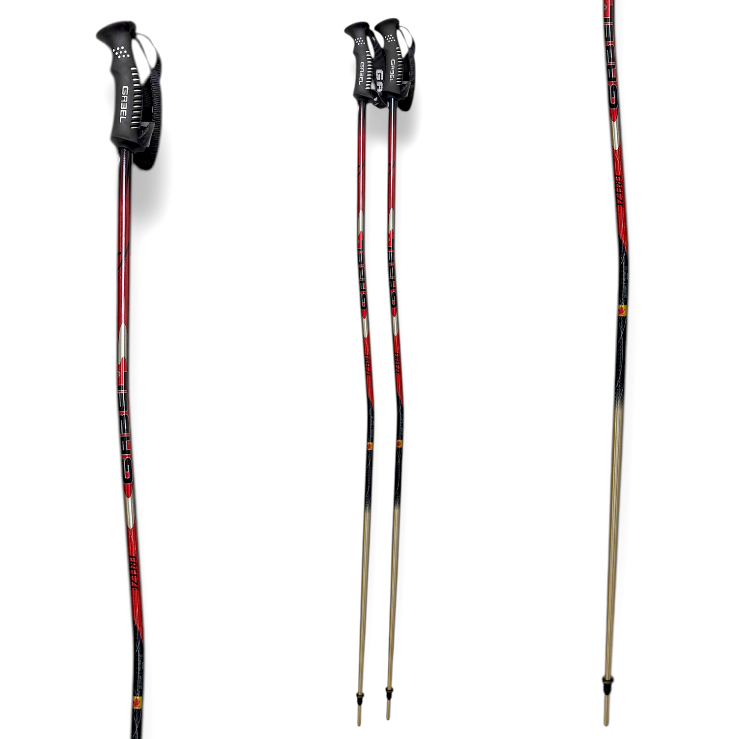 Αγωνιστικά λυγισμένα μπατόν σκι από την ιταλική μάρκα Gabel, κατασκευασμένα από αλουμίνιο αεροπορικού τύπου, για χαμηλότερο βάρος και υψηλή αντοχή.