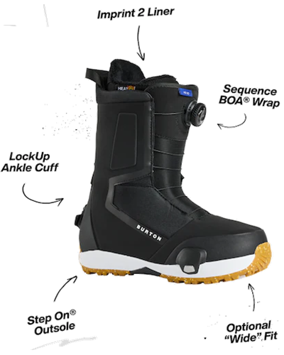 • Εξωτερική σόλα : Step On® Outsole, Ειδικό ανακυκλωμένο μείγμα καουτσούκ της Burton. Η εξωτερική σόλα από ανακυκλωμένο καουτσούκ Burton διαθέτει 20% περιεκτικότητα σε ανακυκλωμένο καουτσούκ και προσφέρει πρόσφυση και ανθεκτικότητα σε όλα τα εδάφη.