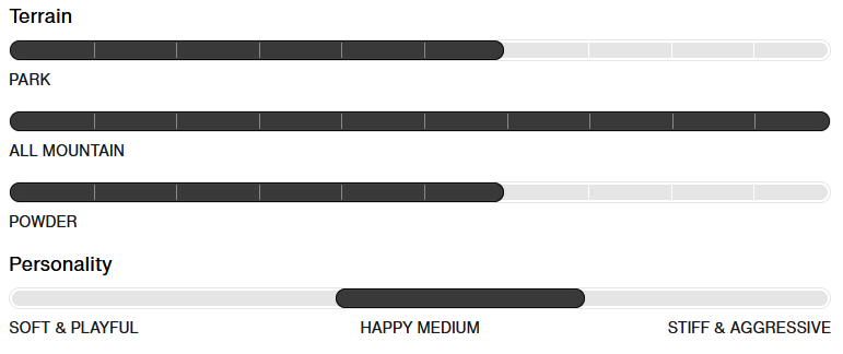 All Mountain Snowboard. Μια θρυλική, ευέλικτη και διασκεδαστική σανίδα με twin flex και κάμψη που κάνει εύκολη τη χρήση σε όλα τα εδάφη και τις συνθήκες. Συχνά εχει μιμιθεί, ποτέ δεν εκανε πίσω, και υποστηρίζεται από χιλιάδες λατρείας ως μια απάντηση του  snowboarding για όλα τα εδάφη.
