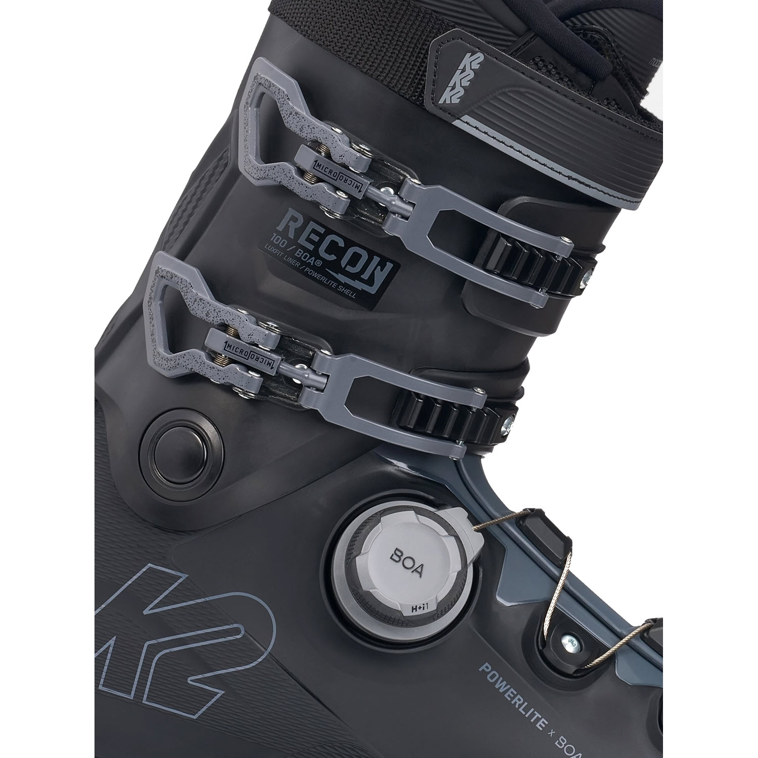Υπάρχει τόση πολλή τεχνολογία μέσα στη Recon 100 Βoa, είναι δύσκολο να ξέρεις από πού να ξεκινήσεις. Μια θερμικά χυτευόμενη επένδυση παρέχει την τέλεια ισορροπία μεταξύ άνεσης και υποστήριξης. Η Recon 100 Boa σας δίνει πρόσβαση σε όλες τις πλαγιές και συχνά σας βγάζει έξω για να δοκιμάσετε τη μικρή πούδρα. Η ευελιξία της δεν αποκλείει το γεγονός ότι μπορεί να χρησιμοποιηθεί με συνεχή τρόπο. Το flex 100 αποδεικνύεται αρκετά γενικής χρήσης, προσφέροντας τη σωστή ισορροπία μεταξύ ανοχής και ακρίβειας, επιτρέποντάς σας να διατηρείτε τον έλεγχο σε όλες τις καταστάσεις. Το κουμπί σύσφιξης BOA® εξασφαλίζει γρήγορη, ακριβή και ομοιόμορφη εφαρμογή στο μπροστινό μέρος του παπουτσιού, ενώ τα άγκιστρα παρέχουν εξαιρετική στήριξη στο πάνω μέρος.