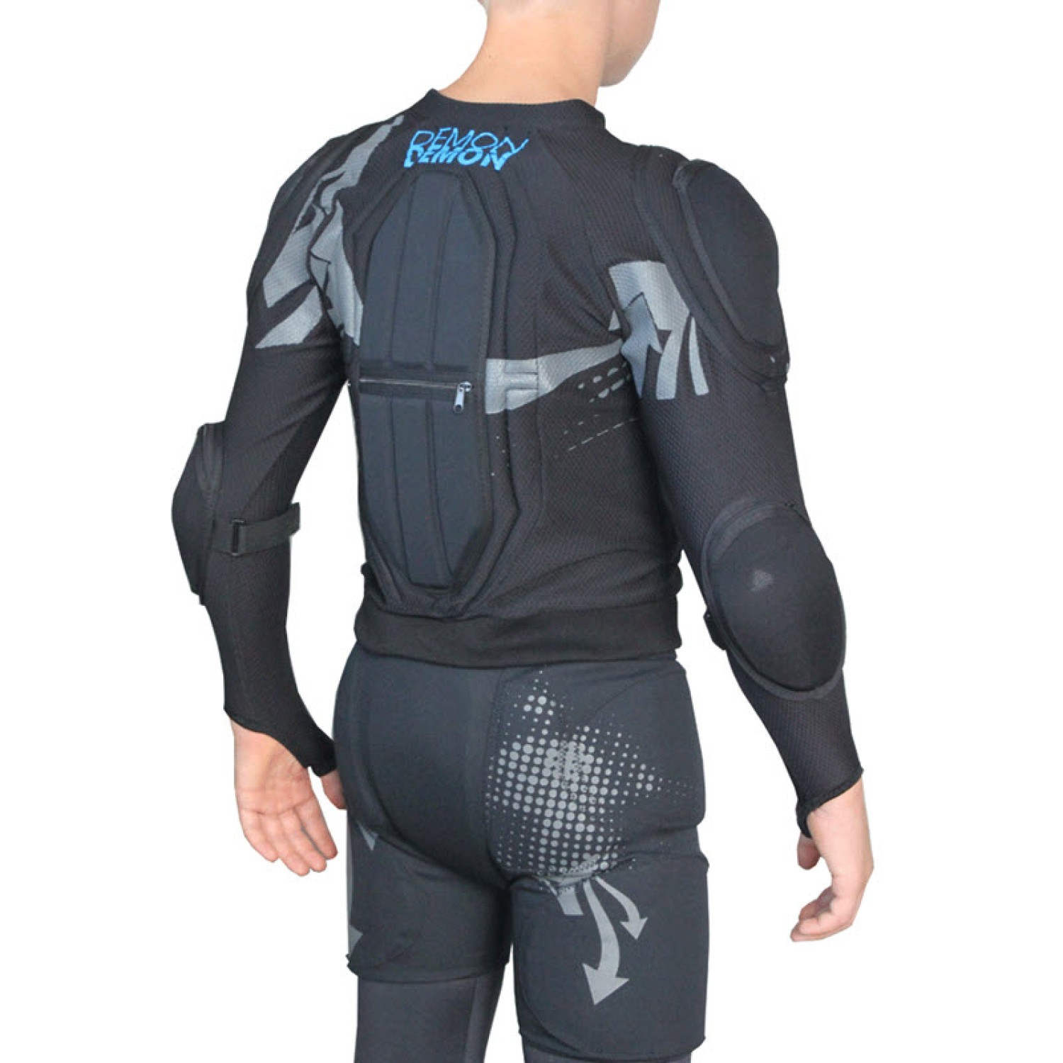 Ακριβώς όπως το Demon Flex Force Pro, αλλά αυτό είναι ειδικά σχεδιασμένο για τα παιδιά. Αυτό το παιδικό προστατευτικό εργαλείο ski & snowboard και όχι μόνο ,έχει ενισχυμένες πλαστικές πλάκες για τους αγκώνες, τους ώμους και τη σπονδυλική στήλη. Το Demon Flex Force Pro διαθέτει επίσης 1/2 ίντσα παχύ πυκνό αφρό μέσα από το γιακά ,για προστασία των οστών,για τα νεφρά, τα πλευρά και τα μπράτσα. Το προστατευτικό της Demon έχει ρυθμιζόμενους ιμάντες στα πλευρά και ιμάντες που προστέθηκαν πρόσφατα στα χέρια για να κρατήσουν τα μαξιλάρια του αγκώνα σας στη θέση του. Το Flex Force αποτελείται από ακριβώς το σωστό υλικό και βάρος για να κρατήσει τα pads στη θέση τους . Η Demon αύξησε την προστασία των πλευρών και πρόσθεσε λεπτές ρυθμίσεις στα pad για να βεβαιωθείτε ότι όλα τα ζωτικής σημασίας όργανα καλύπτονται. Ισως η καλύτερη προστασία για τα χρήματα σας.Διαθέτε δλές τσέπς εμπρος και αντικραδσμική προστασία πλευρών.