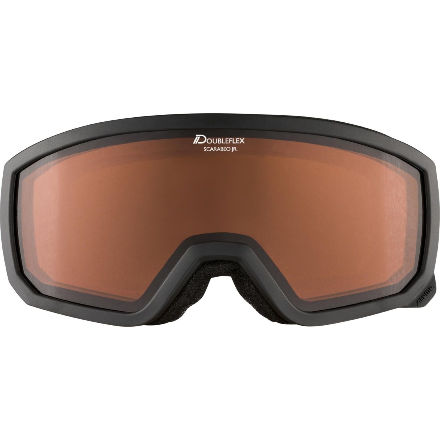 Η νέα alpina SCARABEO είναι τώρα διαθέσιμο και για παιδιά. Ο μεγάλος πανοραμικός φακός προσφέρει τέλεια σφαιρική όραση και έτσι βελτιώνει την ασφάλεια για τα παιδιά στις πίστες του σκι. H μάσκα αυτή με πλήρες χείλος έρχεται με ένα κυλινδρικό διπλό φακό που ενισχύει την αντίθεση.Η SCARABEO JUNIOR είναι επίσης ιδανική για παιδιά που φορούν γυαλιά. Διαθέτει διπλούς φακούς και τεχνολογία DOUBLEFLEX , όπου εγγυάται 100% UVA/UVB/UVC προστασία και υψηλή αποροφήση και αντανάκλαση της επικίνδυνης ακτινοβολίας, με ειδική επίστρωση antifog έτσι ώστε να μήν θαμπώνει και είδικό σύστημα αεραγωγών Air Frame venting για καλή κυκλοφορία του αέρα. Είναι μια  μάσκα με πολύ καλό οπτικό πεδίο που θα καλύψει όλες σας τις ανάγκες στην ομίχλη καθώς και τις υπόλοιπες ημέρες στο βουνό. Ολες οι μάσκες ALPINA είναι πιστοποιημένες με τα τελευταία ευρωπαικά standard CE:EN174:2001 και έχουν περάσει τα δυσκολότερα ευρωπαικά τεστ σχετικά με την ποιότητα των φακών ,την αντοχή και την εφαρμογή.