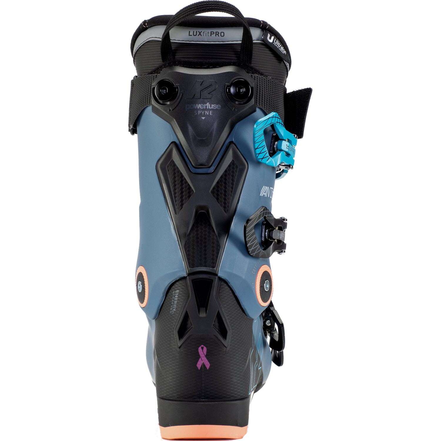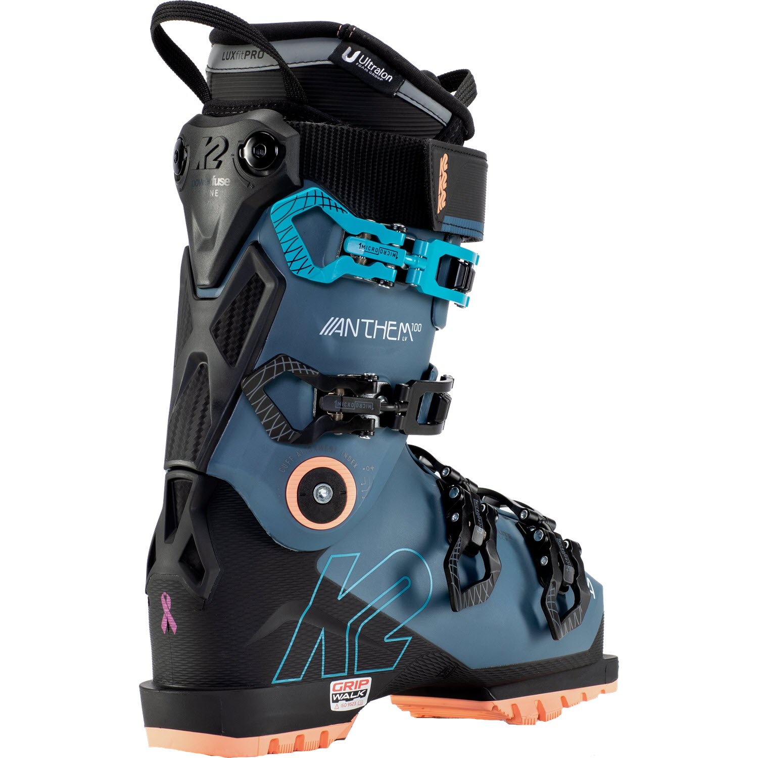 Μπότα που δεν συμβιβάζεται με χαρακτηριστικά ή τεχνολογίες, η Anthem 100 είναι μια μπότα προσανατολισμένη στην απόδοση με ένα κέλυφος θερμοδιαμορφώσιμο που αφήνει το όγκο και το βάρος πίσω. Προσπαθήσαμε να κατασκευάσουμε την πιο ευέλικτη και κατάλληλη για γυναικεία μπότα απόδοσης στην αγορά και ξεπεράσαμε τους εαυτούς μας. Διατίθεται σε 98mm (LV) και 100mm (MV) διαρκεί για να φιλοξενήσει μια μεγάλη ποικιλία σχημάτων ποδιών. H νέα Anthem 100 MV είναι η ελαφρύτερη μπότα της αγοράς. Η Κ2 αναθεώρησε τα πάντα για το πώς πρέπει να φτιαχτεί μια αλπική μπότα σκι και δημιούργησε την ολοκαίνουργια Anthem 100 MV . Συνδυάζοντας τέσσερα διαφορετικά πλαστικά TPU με ένα βέλτιστο πάχος κελύφους για να κατασκευάσει το ολοκαίνουριο κέλυφος Powerlight, κατασκευάζοντας μια μπότα σχεδιασμένη για ελίτ επιδόσεις με το μικρότερο δυνατό βάρος της αγοράς . Το Stiffer PU είναι στρατηγικά τοποθετημένο στα σημεία όπου η μπότα συναντά τις δέστρες και κατά μήκος της σπονδυλικής στήλης της μπότας για άμεση μεταφορά ισχύος, ενώ η μέση και μαλακή PU περιβάλλει το σώμα του ποδιού και κοντά στο τοίχωμα για να εμποδίζει τους κραδασμούς να εισέλθουν στο πόδι. Το κέλυφος είναι πλήρως θερμοπλαστικό TPU, έτσι ώστε κατά τη διάρκεια θερμικής επεξεργασίας η μπότα να εφαρμόζει τέλεια στα συγκεκριμένα χαρακτηριστικά των ποδιών σας. Η λειτουργία εισόδου Fast fit βοηθά στην είσοδο και έξοδο του ποδιού στην μπότα με ευκολία. Το αποτέλεσμα είναι ένα ότι η νέα Anthem είναι η ελαφρύτερη μπότα για σκι στην αγορά. Tο σύστημα SpYne PowerFuse διασφαλίζει την αποτελεσματική μεταφορά ενέργειας ,