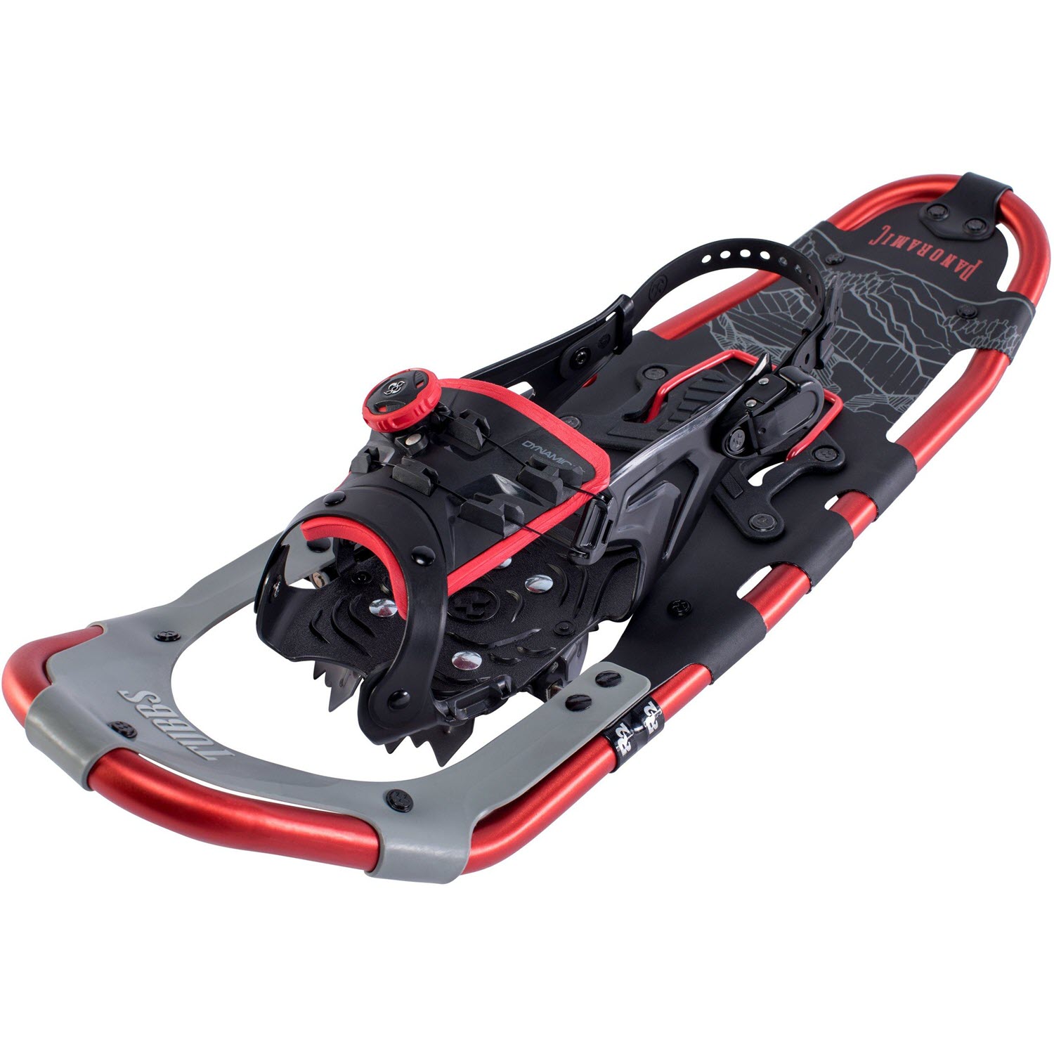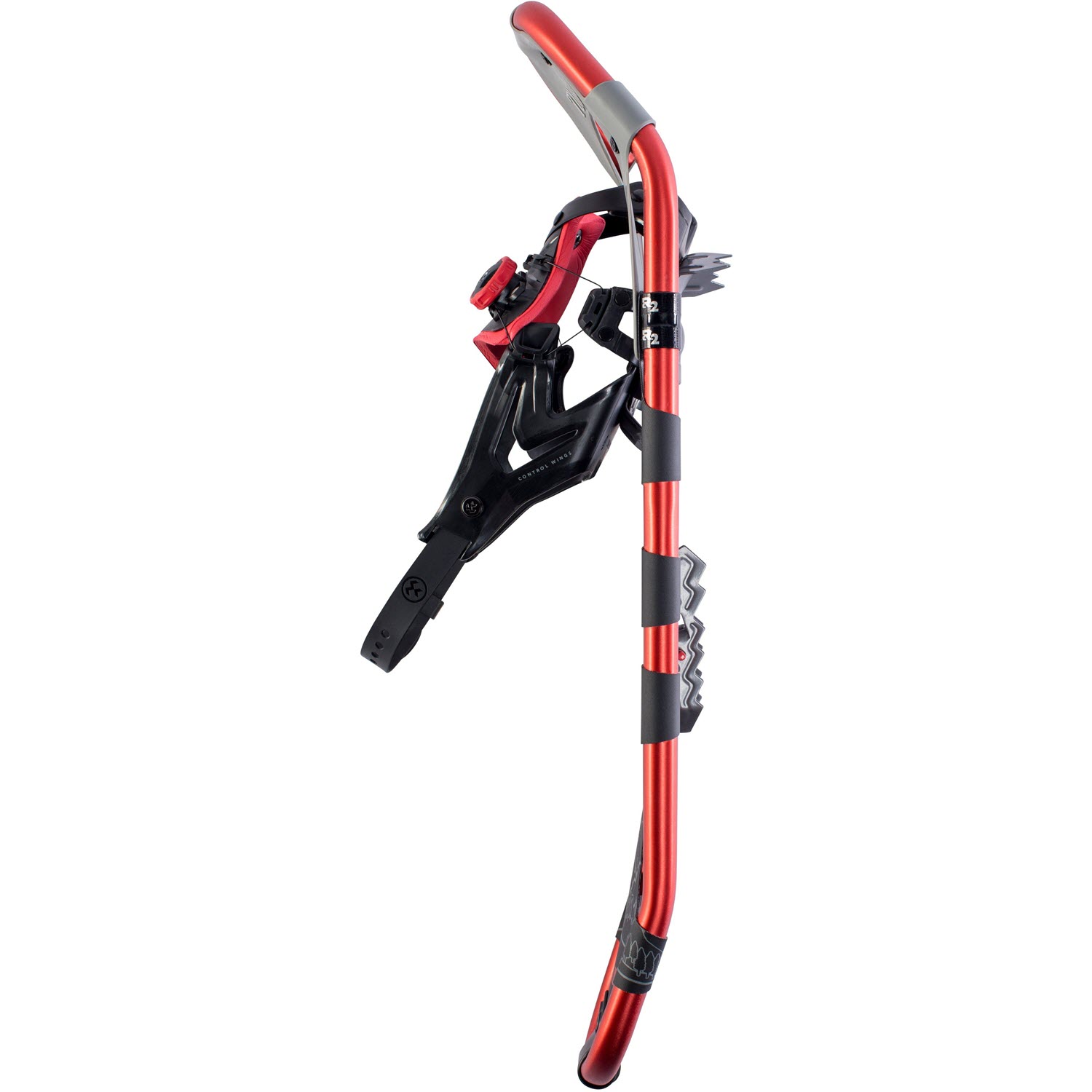 Άρθρωση: Σύστημα αρθρώσεων περιστρεφόμενου toe κορδονιού : Ο σχεδιασμός περιστρεφόμενου καλωδίου Toe επιτρέπει την πτώση της ουράς του χιονοπέδιλου, ρίχνοντας χιόνι από την ουρά. Όταν ευθυγραμμίζονται, τα δόντια στην πρόσφυση των ποδιών δαγκώνουν βαθιά στο χιόνι.