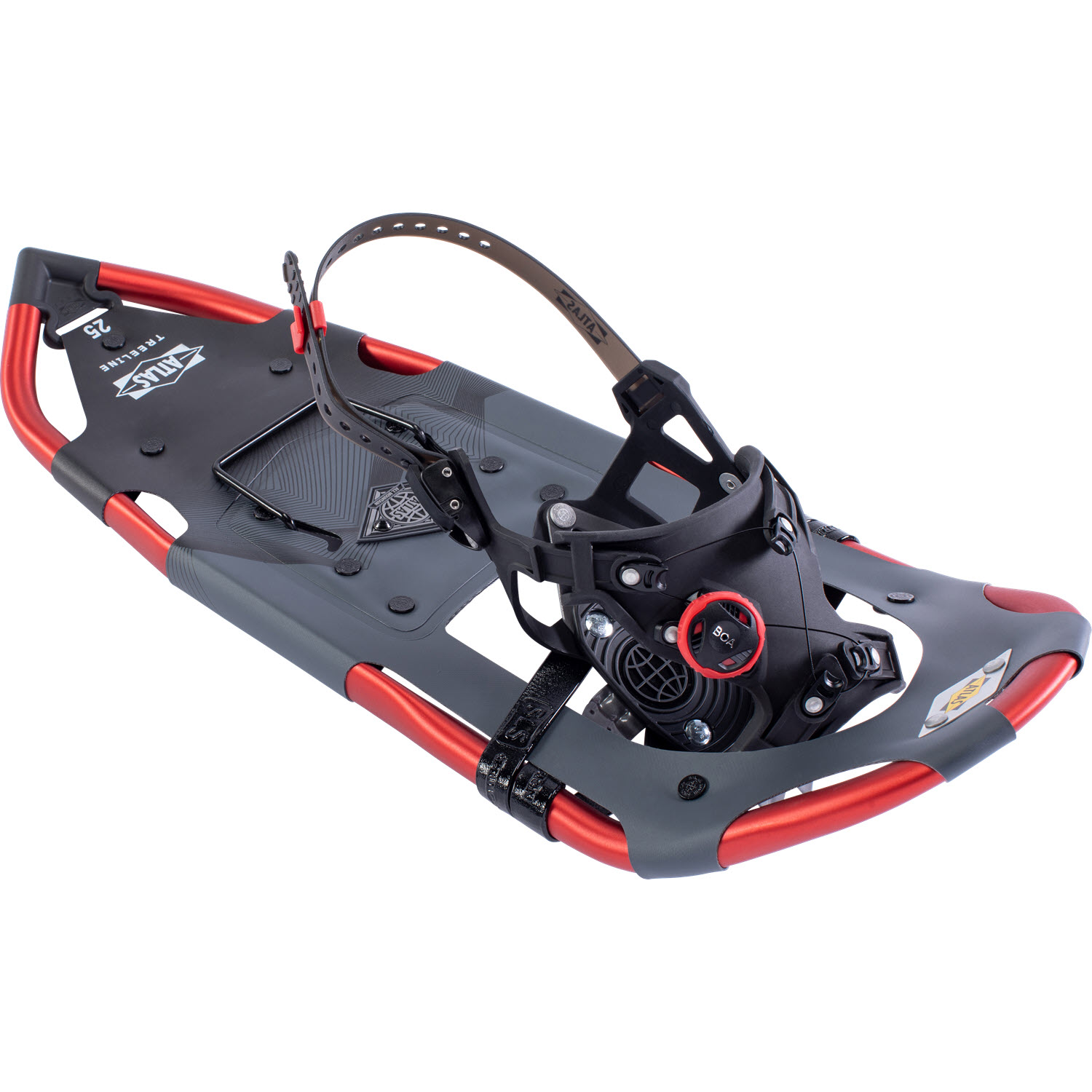 Η Treeline διαθέτει την ανάρτηση Atlas's Spring-Loaded™, μια πατενταρισμένη σχεδίαση που επιτρέπει την απορρόφηση των κραδασμών, τη φυσική κάμψη από πλευρά σε πλευρά και βαθύτερη διείσδυση κραμπόν για ασυμβίβαστο βηματισμό. Η άνεση και η ασφάλεια διατίθενται στάνταρ με το δέσιμο Wrapp™ MTN που χρησιμοποιεί το σύστημα σφιξίματος BOA® για να παρέχει γρήγορη, ακριβή εφαρμογή με δυνατότητα οποιασδήποτε προσαρμογής κατά τη διάρκεια της πεζοπορίας. Η μεταβλητή διαμόρφωση του πλαισίου αλουμινίου Reactiv™ αλλάζει από κυλινδρικό σε ελλειπτικό σχήμα για να αυξήσει την αντοχή όπου το πλαίσιο αντέχει το μεγαλύτερο φορτίο σε πιό σκληρά χιόνια για μεγαλύτερη απόκριση. Συνδυάζεται με μαλακό, λείο κατάστρωμα Nytex, το πλαίσιο Reactiv παρέχει άφθονη επίπλευση και σταθερότητα σε βαθύτερο χιόνι. Η αξιόπιστη πρόσφυση είναι χαρακτηριστικό γνώρισμα των χιονοπέδιλων μας σε όλο το βουνό και το Treeline δεν αποτελεί εξαίρεση! Το μπροστινό κράτημα του κραμπόν δακτύλων All-Trac™ και το Advanced Aft Traction παρέχουν το απαραίτητο κράτημα σε διάφορες συνθήκες χιονιού.