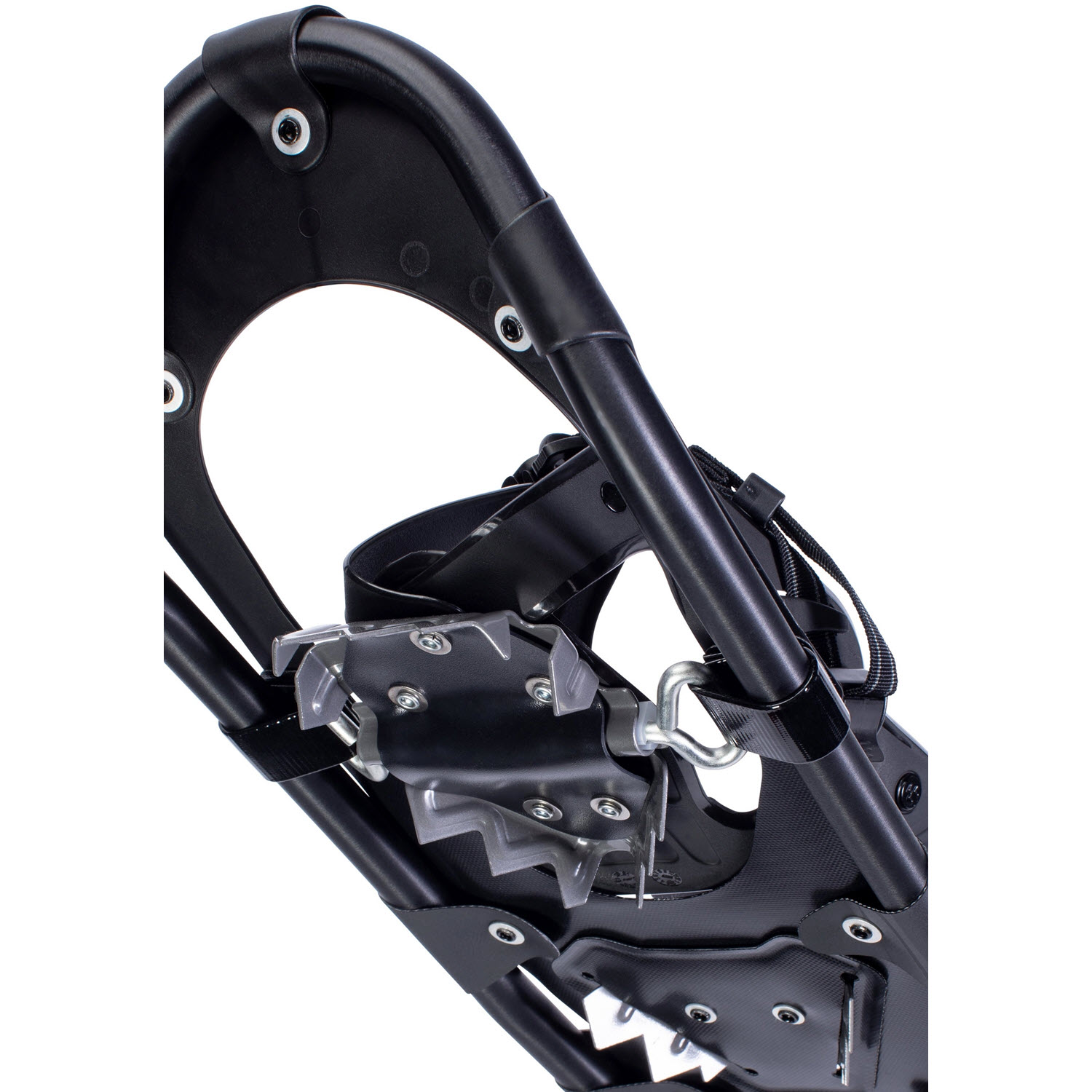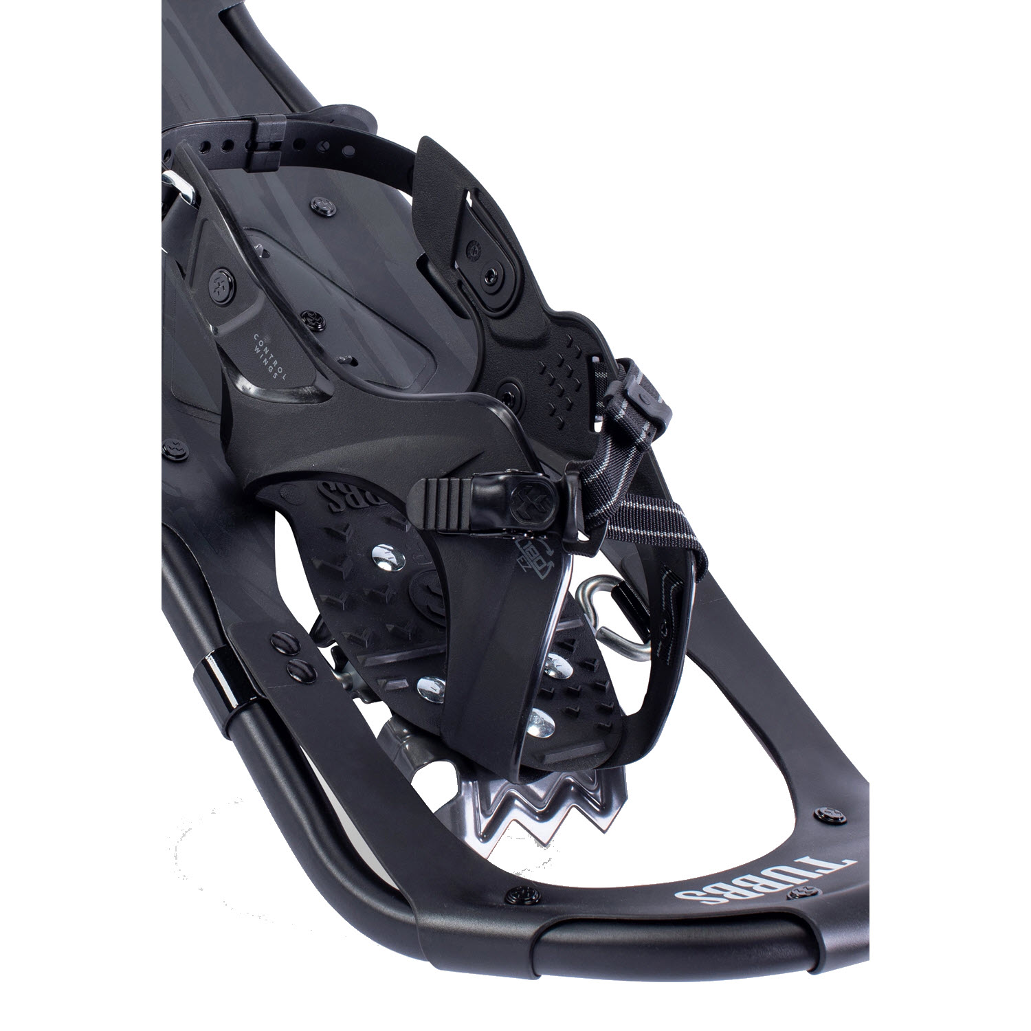 Άρθρωση: Σύστημα αρθρώσεων περιστρεφόμενου toe κορδονιού : Ο σχεδιασμός περιστρεφόμενου καλωδίου Toe επιτρέπει την πτώση της ουράς του χιονοπέδιλου, ρίχνοντας χιόνι από την ουρά. Όταν ευθυγραμμίζονται, τα δόντια στην πρόσφυση των ποδιών δαγκώνουν βαθιά στο χιόνι.