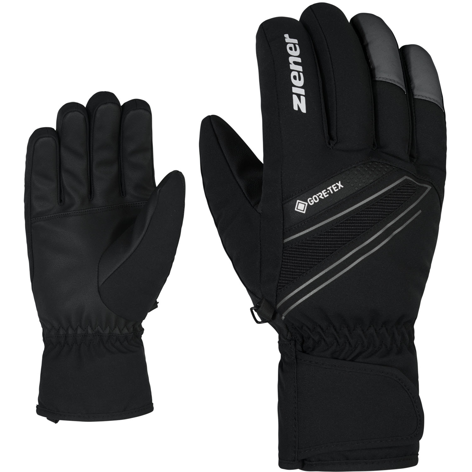 Τα σπορ ανδρικά γάντια σκι ZIENER GUNAR GTX είναι εξοπλισμένα με μεμβράνη GORE-TEX, καθιστώντας τα μόνιμα αδιάβροχα, αντιανεμικά και διαπνέοντα. Οι απτικές παλάμες προσφέρουν μέγιστη άνεση. Οι ιμάντες Velcro στους καρπούς εξασφαλίζουν τέλεια εφαρμογή και μπορούν να φορεθούν κάτω από τα μανίκια του μπουφάν σας.