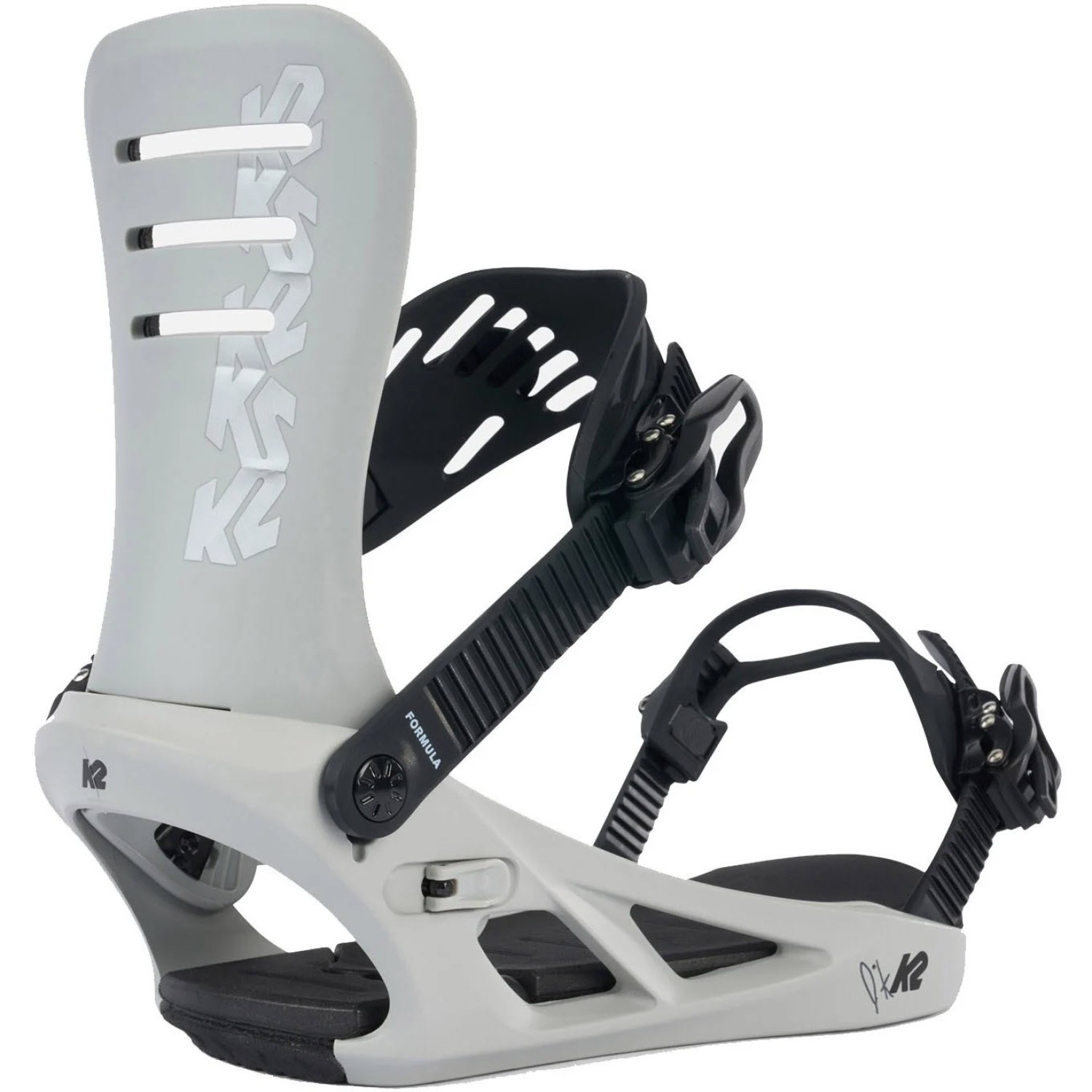 Από τους τρελούς επιστήμονες στο εργαστήριο K2, η ευέλικτη δέστρα snowboard K2 Formula είναι μία δέστρα ελεύθερου στυλ σε όλο το βουνό που δεν φοβάται να το ανακατέψει τα απότομα, τα πάρκα ή τους δρόμους και να επιλεγεί απο τους παγκόσμιους αθληυές και φίλους της K2 ομοίως. Tεσταρισμένη από τους Pro Riders και εγκεκριμένη από χιλιάδες αναβάτες η νέα K2 Formula είναι η εξέλιξη στις δέστρες της Κ2.Eίναι εφοδιασμένη για άλλη μια φορά με κεκλιμένο footbeds, Pro-Fusion ελαφρότερο σασί , ΤΕ και Rocklock highback για να οδηγείτε ατελείωτες ώρες στο βουνό με εξαιρετική ευστάθια. Μια δέστρα που δεν θα ανακαλύψετε κολπα και προβλήματα απλά τέλεια στην εφαρμογή σύμφωνα και με τον pro rider Lucas Debari  Το εμπρός στράπ έχει τη δυνατότητα να δέσετε τη μπότα σας στη δέστρα είτε απο εμπρός στα δάκτυλα έιτε από πάνω απο τη μπότα.Ο καινούργιος ιμάντας αστραγάλου Sender ™ λειτουργεί σε αρμονία με το πέλμα ,αποσβένοντας όλους τους κραδασμούς για αυξημένη ευστάθεια στην ταχύτητα και εξαιρετική μεταφορά ενέργειας όταν το χρειάζεστε περισσότερο καθώς και την εξασφάλιση καθημερινής άνεσης για rider all-mountain που απαιτούν κορυφαία απόδοση.